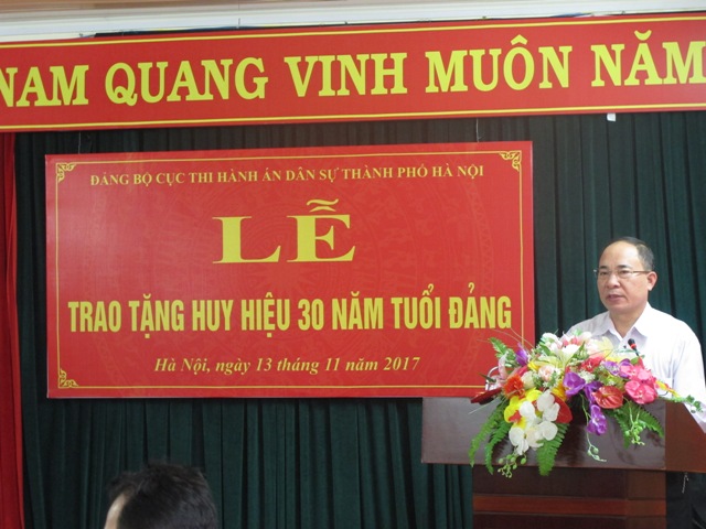 Ngày 13/11/2017, Đảng bộ Cục Thi hành án dân sự thành phố Hà Nội long trọng tổ chức lễ trao tặng huy hiệu 30 năm tuổi Đảng cho đồng chí Đặng Văn Đoàn - Đảng uỷ viên, Bí thư Chi bộ, Trưởng phòng Nghiệp vụ và tổ chức thi hành án.