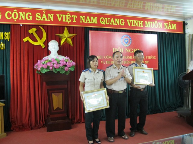 | Đ/c Lê Quang Tiến, Cục trưởng Cục THADS TP. Hà Nội tặng giấy khen cho cá nhân có thành tích xuất sắc trong đợt 1 đợt thi đua cao điểm THADS năm 2017 |