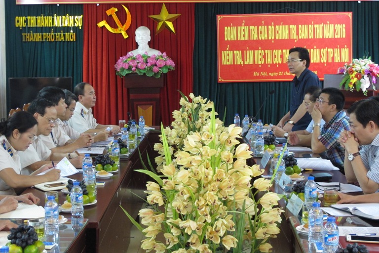 Đoàn kiểm tra của Bộ Chính trị, Ban Bí thư năm 2016 kiểm tra, làm việc tại Cục Thi hành án dân sự thành phố Hà Nội