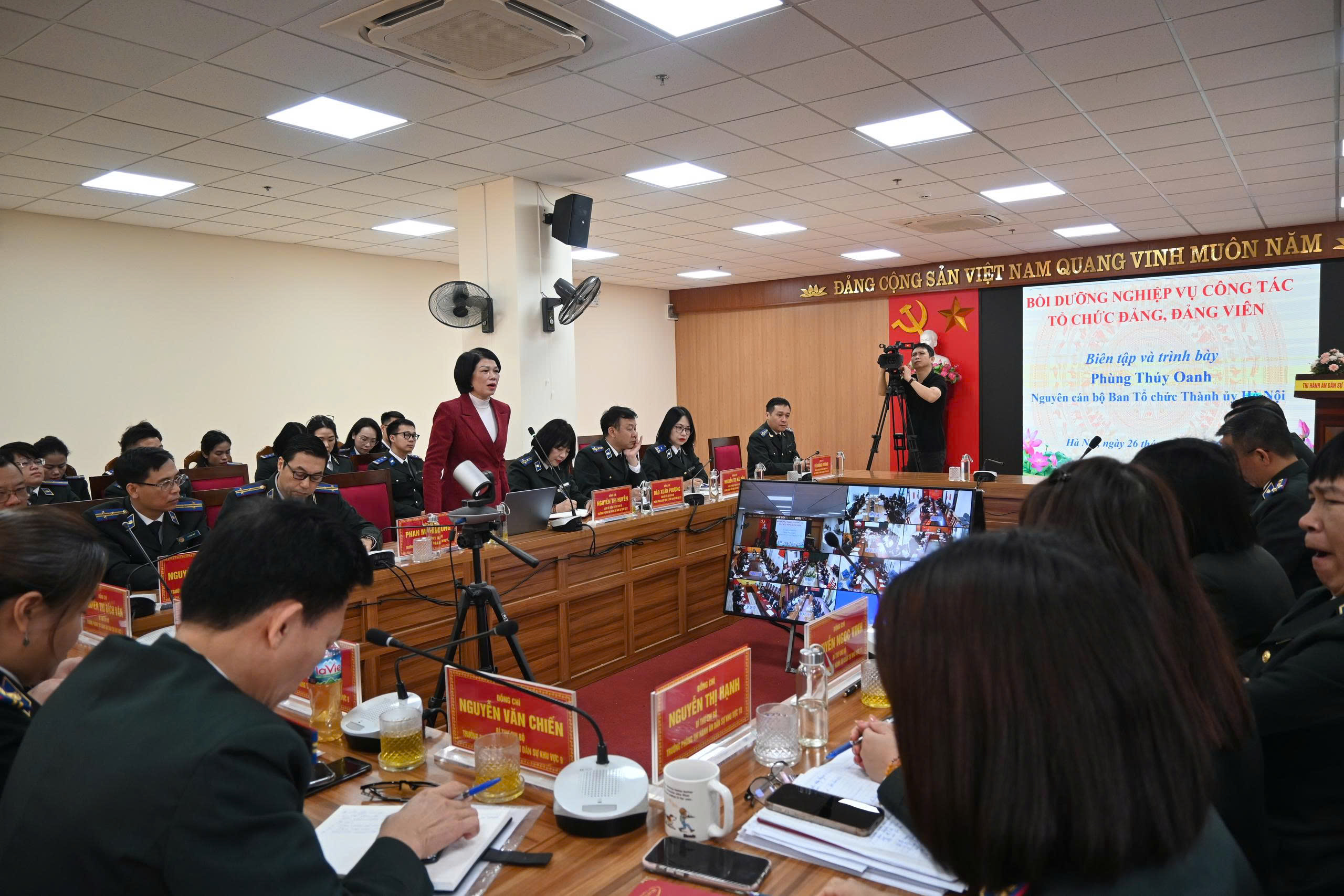 Sau khai mạc Hội nghị, trong buổi sáng ngày 26/11/2025 các đồng chí học viên được nghe đồng chí Phùng Thúy Oanh, nguyên cán bộ Ban Tổ chức Thành ủy Hà Nội trực tiếp truyền đạt, trao đổi chuyên đề cụ thể về nghiệp vụ công tác tổ chức xây dựng Đảng.