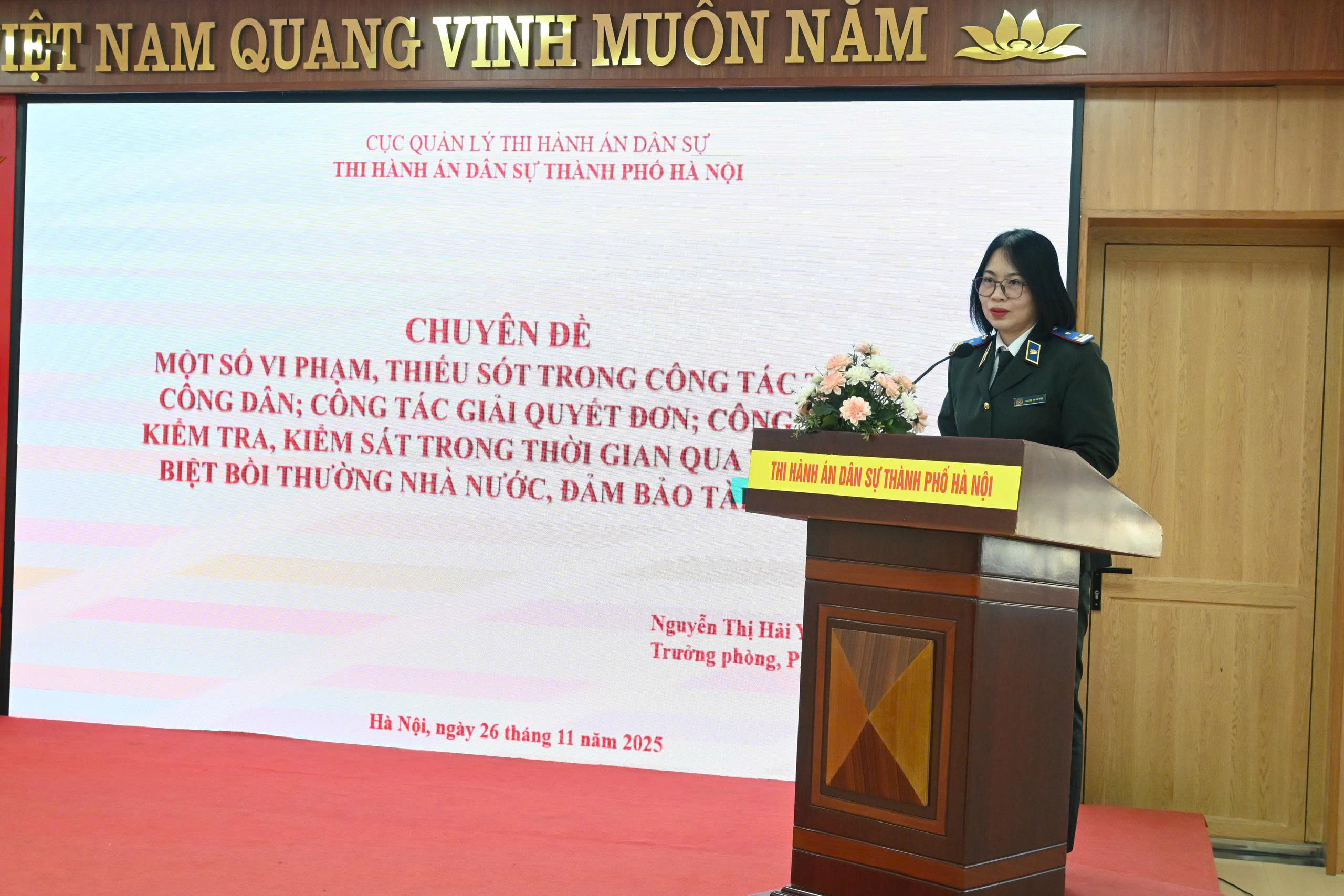 Đứng trước những khó khăn thử thách của yêu cầu nhiệm vụ công tác năm 2026 và những năm tiếp theo đòi hỏi đội ngũ công chức Thi hành án dân sự thành phố Hà Nội phải vững vàng về chính trị, phải công tâm và bản lĩnh, giỏi về nghiệp vụ, tinh thông về pháp luật và đặc biệt cần phải rèn luyện, tích lỹ các kỹ năng, kinh nghiệm trong công tác để tổ chức thi hành án đúng pháp luật, hạn chế và loại trừ những thiếu sót, vi phạm, đảm bảo an toàn và hiệu quả bền vững.