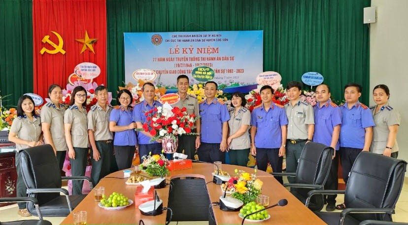 Ngày 19-7, Chi cục Thi hành án dân sự (THADS) huyện Sóc Sơn tổ chức gặp mặt kỷ niệm 77 năm Ngày truyền thống THADS (19/7/1946 - 19/7/2023) và 30 năm chuyển giao công tác THADS (1993-2023). Dự buổi gặp măt có đồng chí Bùi Duy Cường - Thành ủy viên, Bí thư huyện ủy; Nguyễn Nam Hà - Phó Bí thư Thường trực huyện ủy, Chủ tịch HĐND huyện; Phạm Văn Minh - Chủ tịch UBND huyện; Hồ Việt Hùng - Phó Chủ tịch UBND huyện, Trưởng Ban chỉ đạo Thi hành án dân sự huyện Sóc Sơn cùng đại diện các ban, ngành, đoàn thể của huyện.