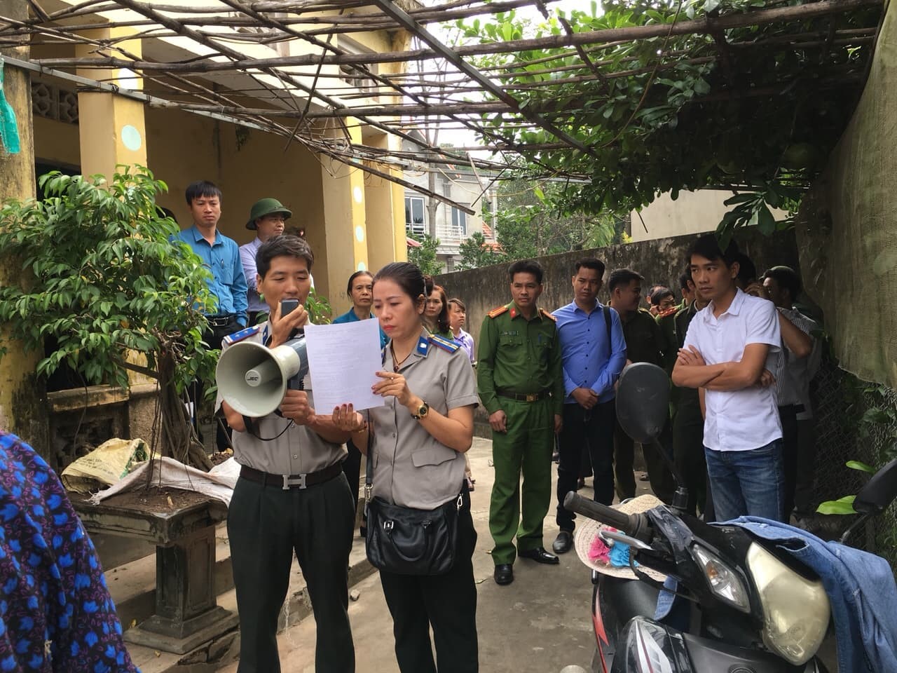 Chi cục THADS huyện Chương Mỹ tổ chức cưỡng chế chia ngõ đi chung tại xã Văn Võ, huyện Chương Mỹ