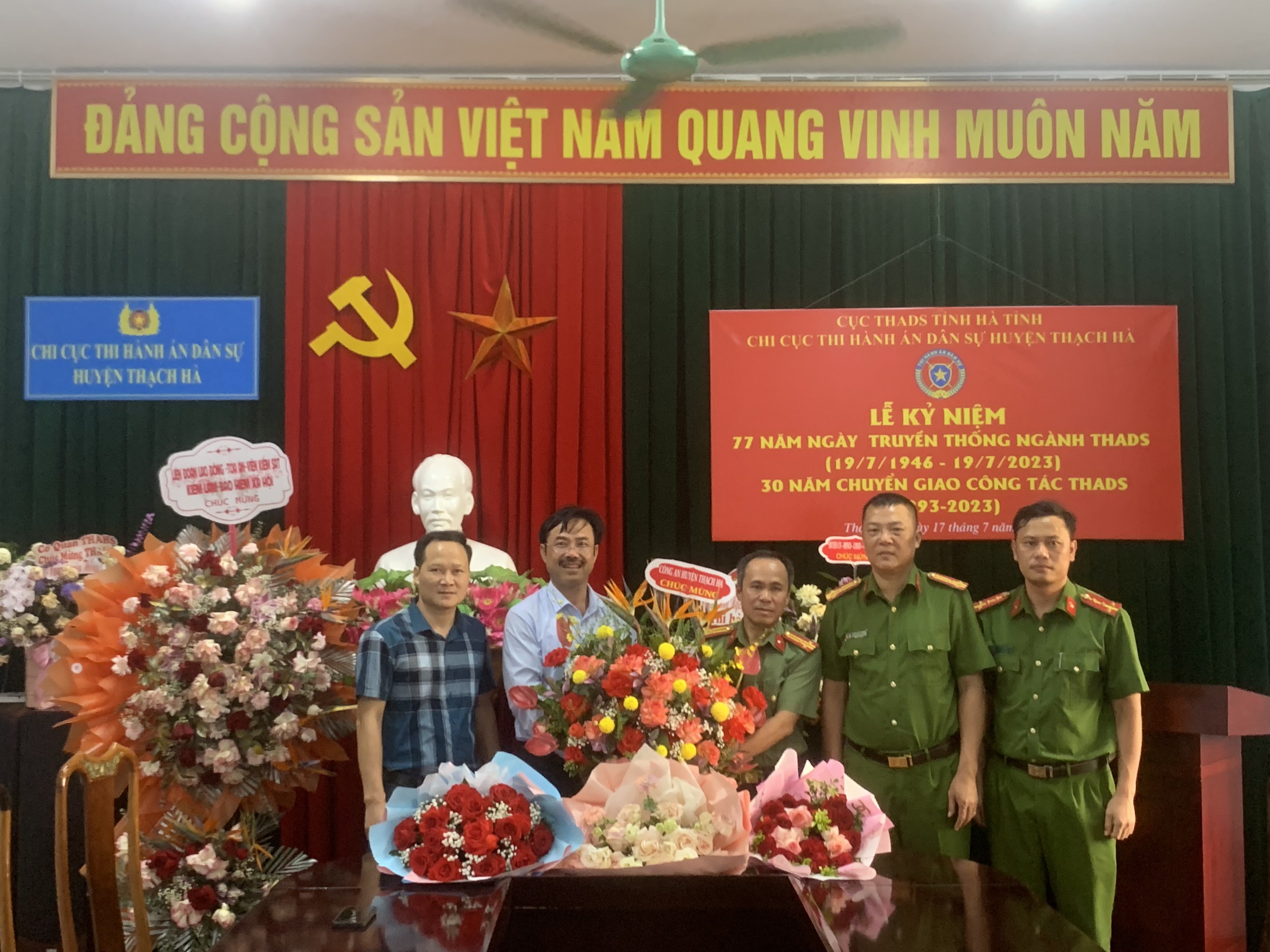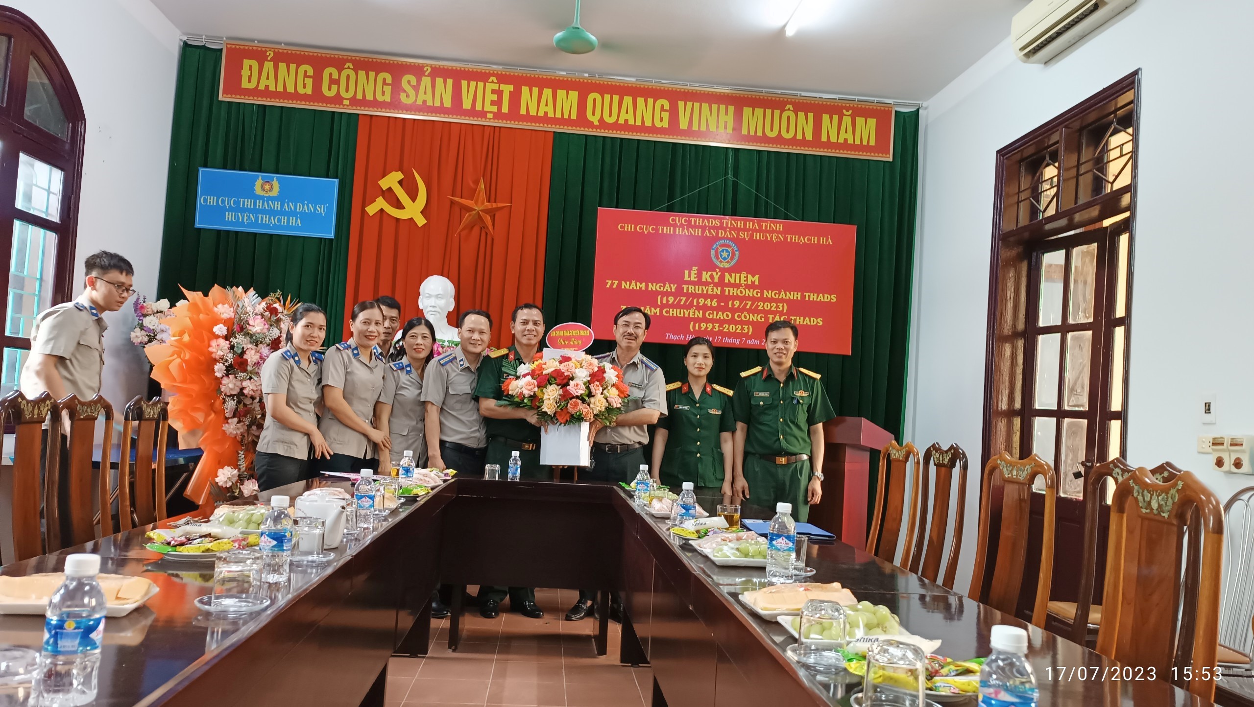 Chiều ngày 17/7/2023, Chi cục Thi hành án dân sự huyện Thạch Hà tổ chức Lễ Kỷ niệm 77 năm ngày Truyền thống THADS; 30 năm chuyển giao công tác THADS (1993 - 2023). Tham dự có đồng chí Văn Đình Minh - Cục trưởng Cục THADS tỉnh Hà Tĩnh; các đồng chí Thường trực Huyện ủy, HĐND, Lãnh đạo UBND huyện; các đồng chí trưởng các Ban xây dựng Đảng, VP Huyện ủy; Lãnh đạo các cơ quan trong khối nội chính, đơn vị, phòng, ban, ngành và tổ chức đoàn thể tại địa phương.