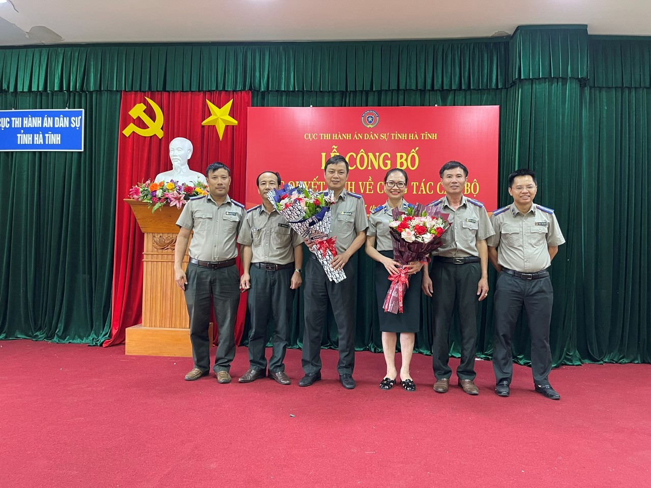 Thực hiện việc kiện toàn chức danh Lãnh đạo các Phòng thuộc Cục năm 2024. Ngày 27/6/2024, Cục Thi hành án dân sự (THADS) tỉnh Hà Tĩnh đã tổ chức Lễ công bố và trao Quyết định của Cục trưởng Cục THADS tỉnh về việc điều động, bổ nhiệm Chánh văn phòng và Trưởng phòng Tổ chức cán bộ Cục THADS tỉnh Hà Tĩnh.