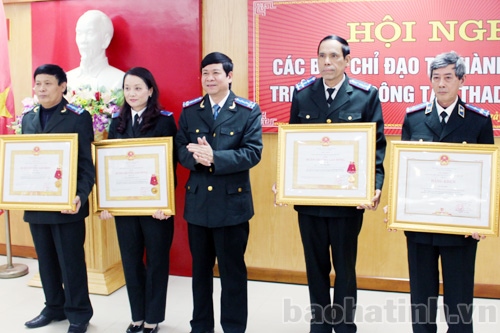 Nhân dịp này, Chủ tịch nước trao tặng Huân chương Lao động hạng 3 cho 3 cá nhân, Thủ tướng Chính phủ tặng bằng khen cho 1 cá nhân xuất sắc; Bộ Tư pháp tặng bằng khen cho 2 cá nhân đạt thành tích xuất sắc trong 20 năm chuyển giao công tác THA (từ năm 1994-2014); UBND tỉnh trao Cờ thi đua xuất sắc cho Chi cục THADS huyện Cẩm Xuyên.
