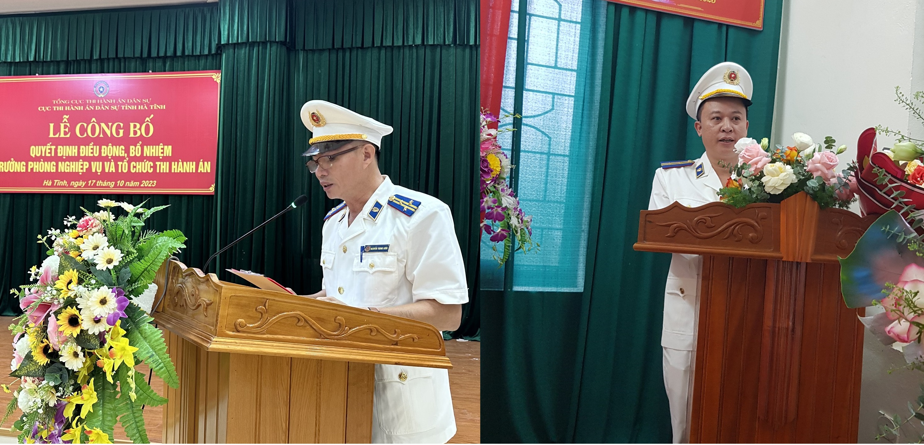 Thực hiện Kế hoạch công tác tổ chức cán bộ năm 2023; Thực hiện công tác kiện toàn chức danh lãnh đạo các cơ quan Thi hành án dân sự tỉnh Hà Tĩnh. Ngày 17/10/2023, Cục Thi hành án dân sự tỉnh Hà Tĩnh đã long trọng tổ chức Lễ công bố Quyết định điều động, bổ nhiệm chức vụ Chi cục trưởng Chi cục Thi hành án dân sự huyện Lộc Hà và Trưởng phòng Nghiệp vụ và tổ chức thi hành án dân sự, đối với đồng chí đồng chí Lê Văn Sơn, Phó phụ trách Phòng Nghiệp vụ và Tổ chức thi hành án được điều động, bổ nhiệm làm Chi cục trưởng Chi cục THADS huyện Lộc Hà và đồng chí Nguyễn Trung Kiên, Chi cục trưởng Chi cục THADS huyện Lộc Hà được điều động, bổ nhiệm làmTrưởng phòng Nghiệp vụ và Tổ chức thi hành án.