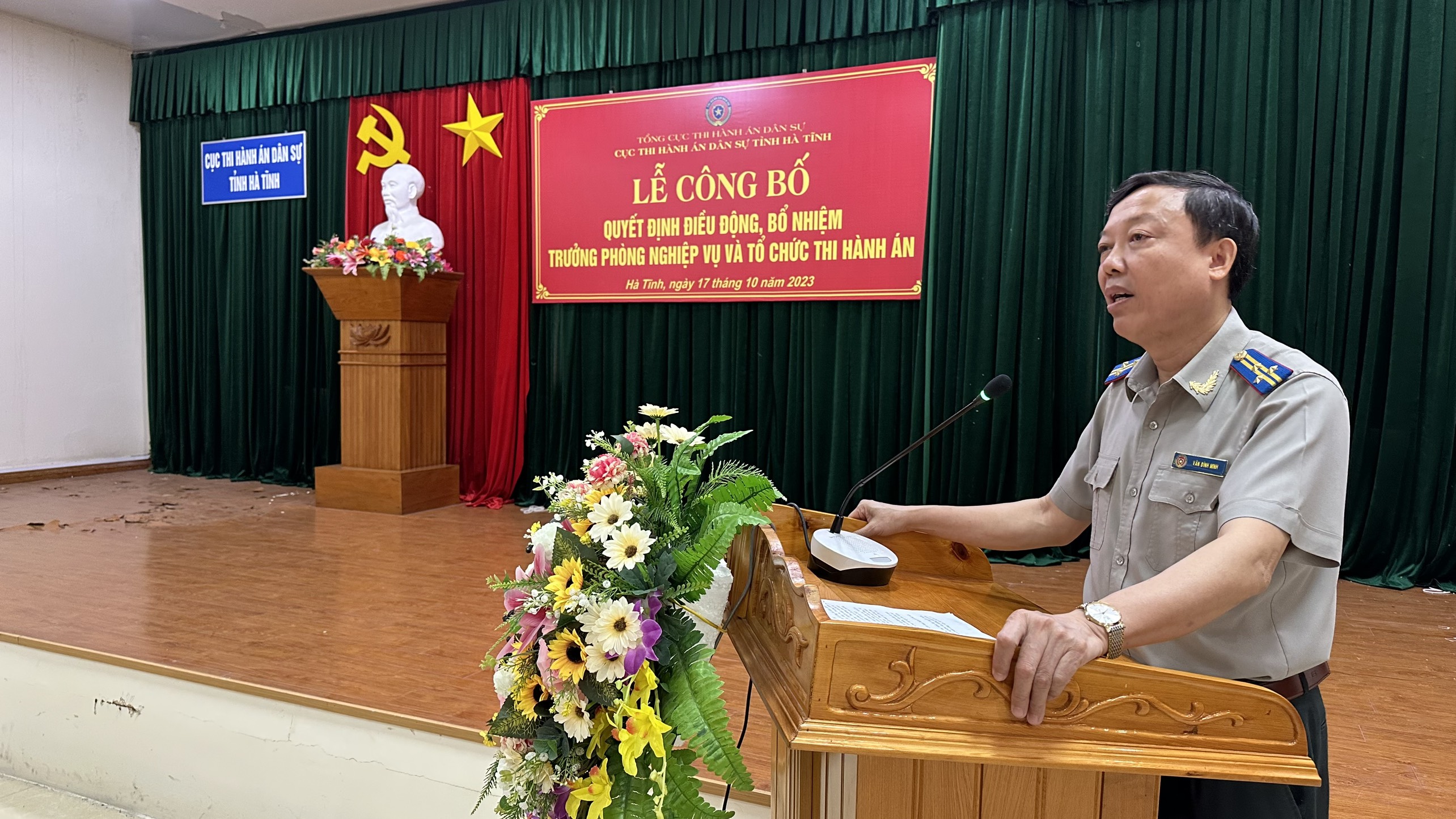Ngày 17 tháng 10 năm 2023, Cục Thi hành án dân sự tỉnh Hà Tĩnh đã long trọng tổ chức Lễ công bố Quyết định điều động, bổ nhiệm Chi cục trưởng Chi cục Thi hành án dân sự huyện Lộc Hà và Trưởng phòng Nghiệp vụ và tổ chức thi hành án dân sự,