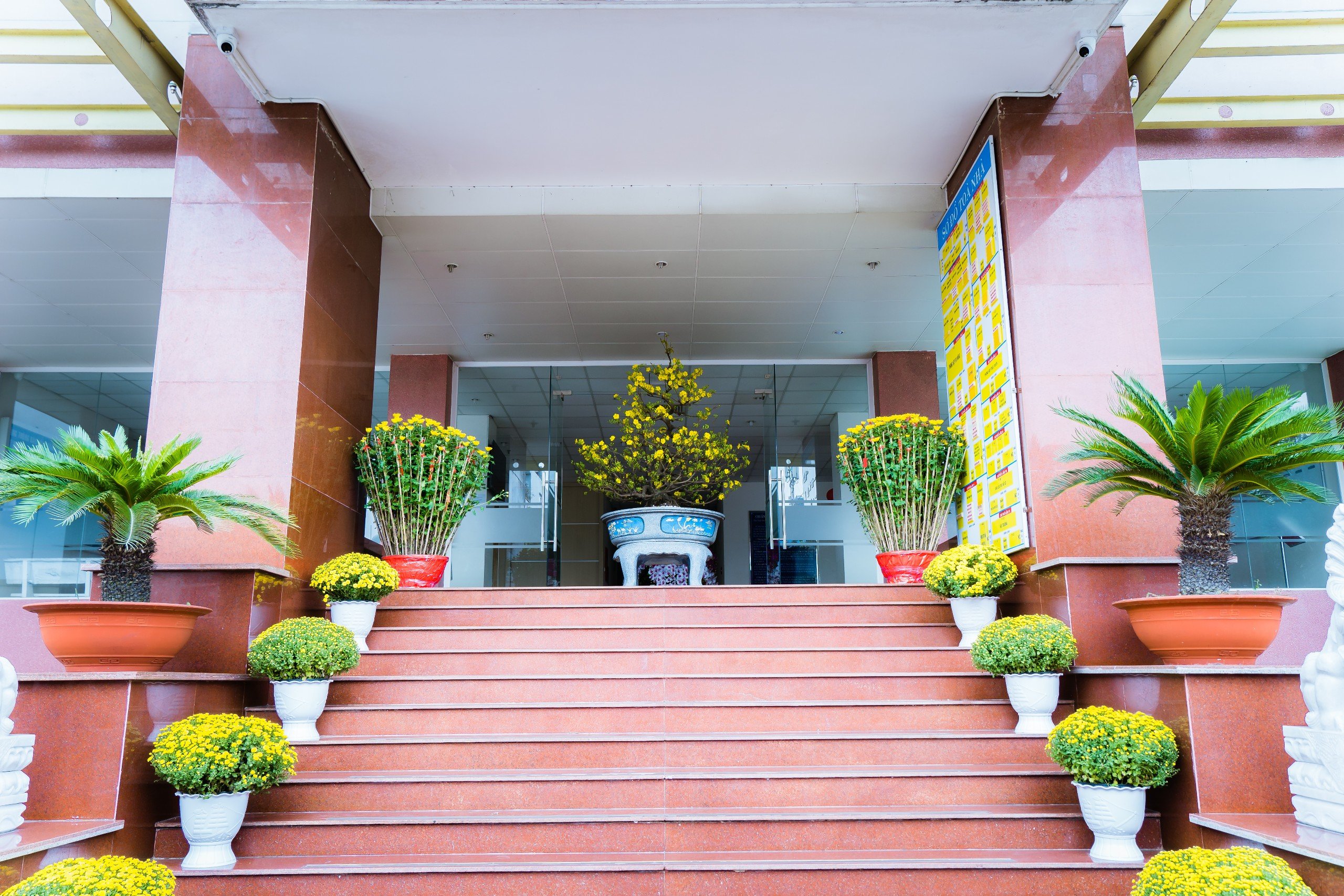 Trang trí hoa tại sảnh cơ quan tạo không khí đón Xuân tưng bừng
