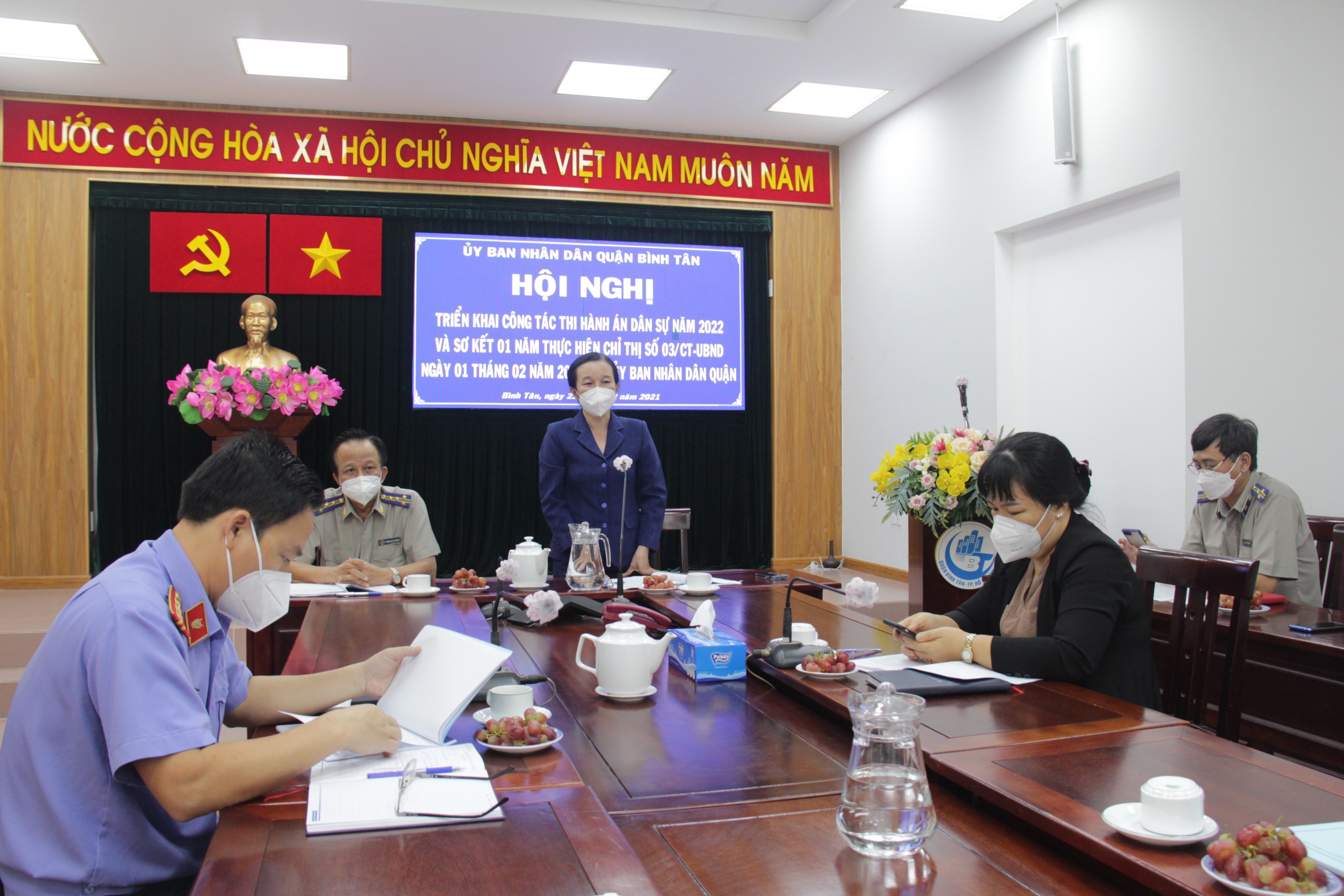 Tiếp thu ý kiến chỉ đạo của lãnh đạo các cấp, ông Nguyễn Hồng Quang, Chi cục trưởng Chi Cục THADS quận Bình Tân thay mặt cán bộ công chức, người lao động Chi cục THADS quận lĩnh hội tất cả các ý kiến chỉ đạo của lãnh đạo các cấp, đồng thời sẽ nghiêm túc tiếp thu để bổ sung vào Kế hoạch công tác năm 2022.