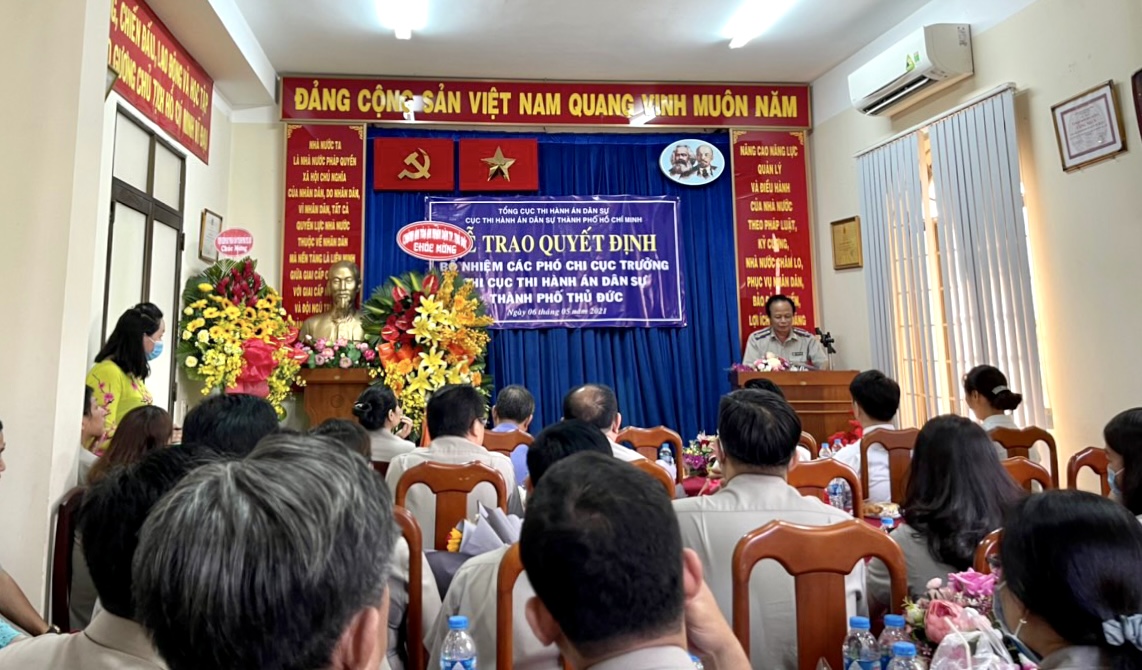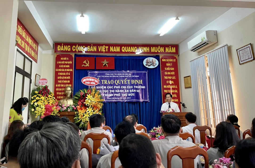 Sáng 06.5.2021, tại trụ sở Chi cục Thi hành án dân sự (THADS) thành phố Thủ Đức, Cục THADS Thành phố Hồ Chí Minh tổ chức trao Quyết định cho các Phó Chi cục trưởng Chi cục THADS thành phố Thủ Đức, TP.HCM