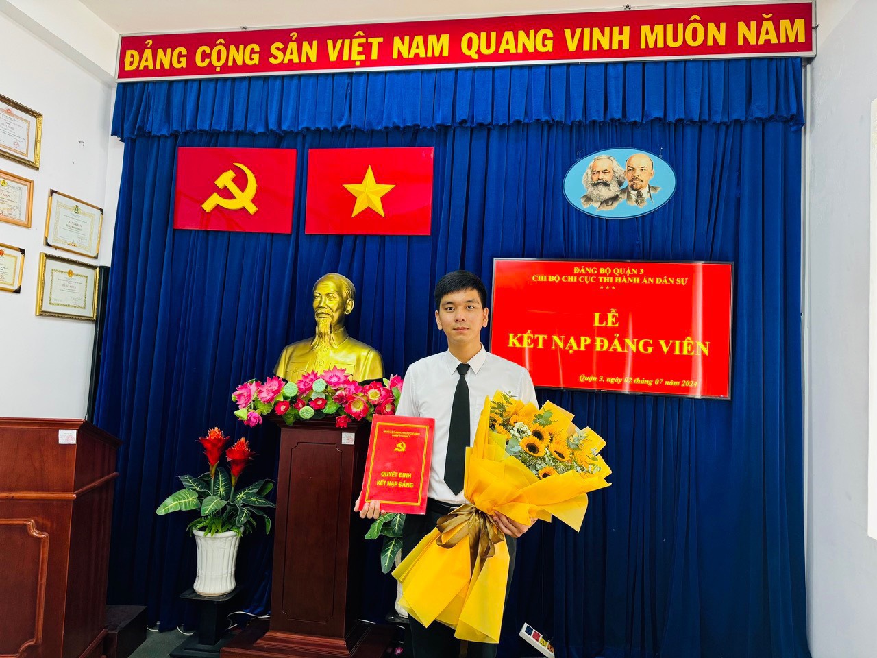 Sáng ngày 02/7/2024, Chi bộ Chi cục Thi hành án dân sự Quận 3 đã tổ chức Lễ kết nạp đảng viên cho quần chúng ưu tú Nguyễn Hải Long - Chức vụ: Chuyên viên pháp lý.