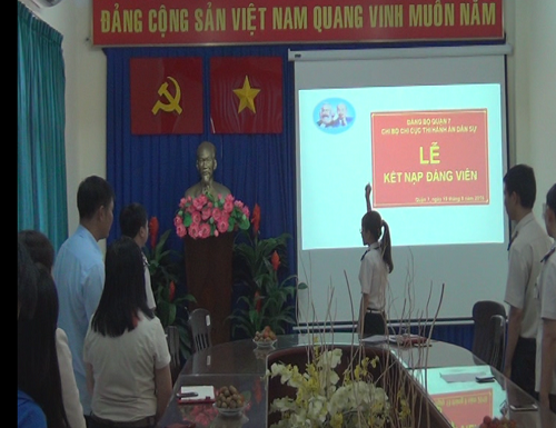 Lễ kết nạp diễn ra theo đúng trình tự, thủ tục điều lệ Đảng dưới sự chủ trì của đồng chí Đỗ Phong Hóa - Bí thư Chi bộ Chi cục Thi hành án dân sự Quận 7 cùng sự tham gia của đại diện BCH Công đoàn, BCH Chi đoàn, các đảng viên trong Chi bộ và đoàn viên ưu tú của Chi đoàn.
