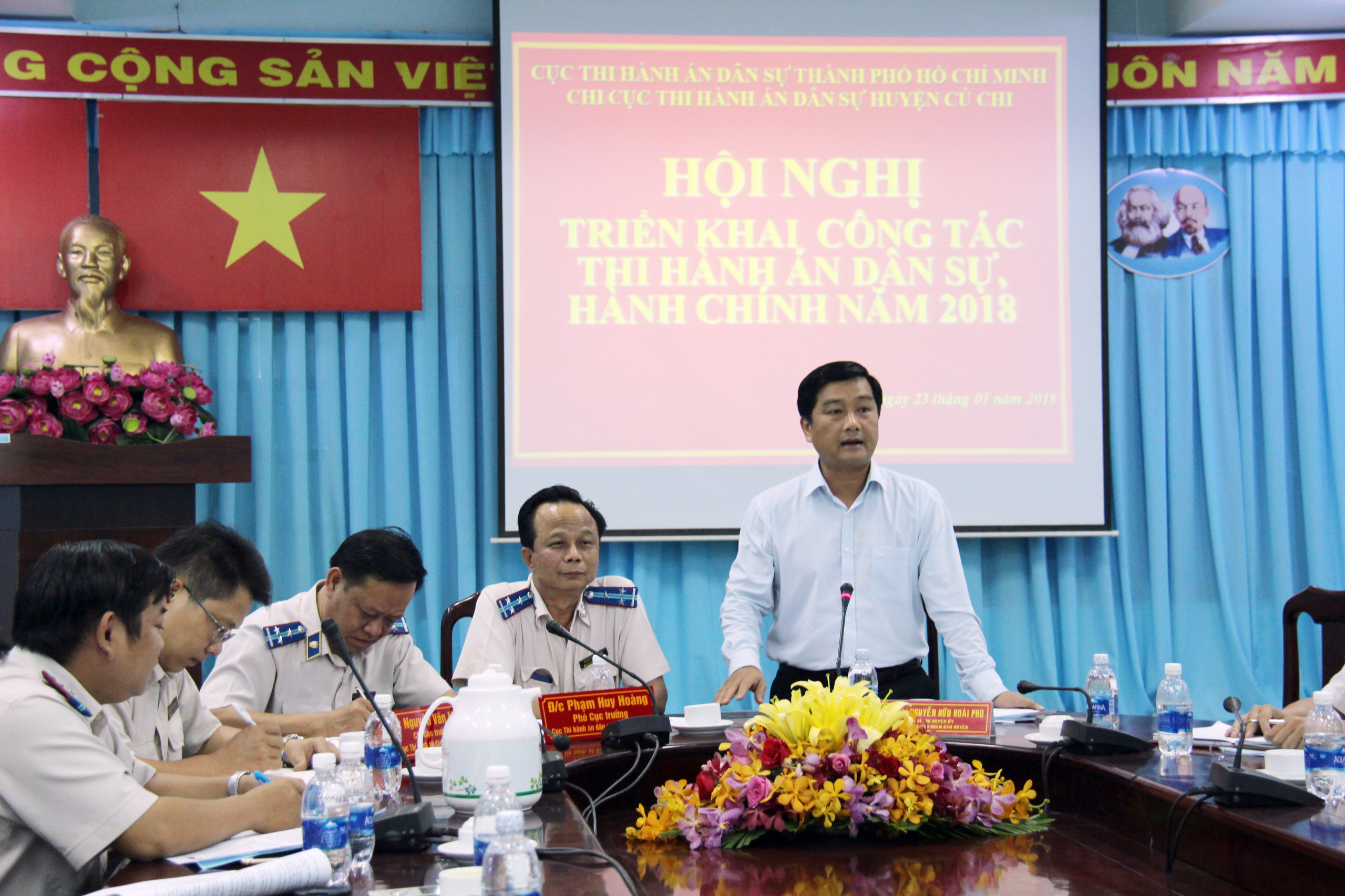 Vừa qua, Chi cục Thi hành án dân sự (THADS) huyện Củ Chi tổ chức Hội nghị triển khai công tác THADS, hành chính năm 2018. Đồng chí Phạm Huy Hoàng, Phó Cục trưởng Cục THADS thành phố dự và chỉ đạo Hội nghị. Tham dự Hội nghị còn có đồng chí Nguyễn Hữu Hoài Phú, huyện ủy viên, Phó Bí Thư huyện ủy, Chủ tịch UBND huyện Củ Chi; Đại diện lãnh đạo các phòng ban thuộc huyện, lãnh đạo Thừa phát lạt; Lãnh đạo UBND các xã; Lãnh đạo Chi cục THADS, công chức – Chic cục THADS huyện Củ Chi.