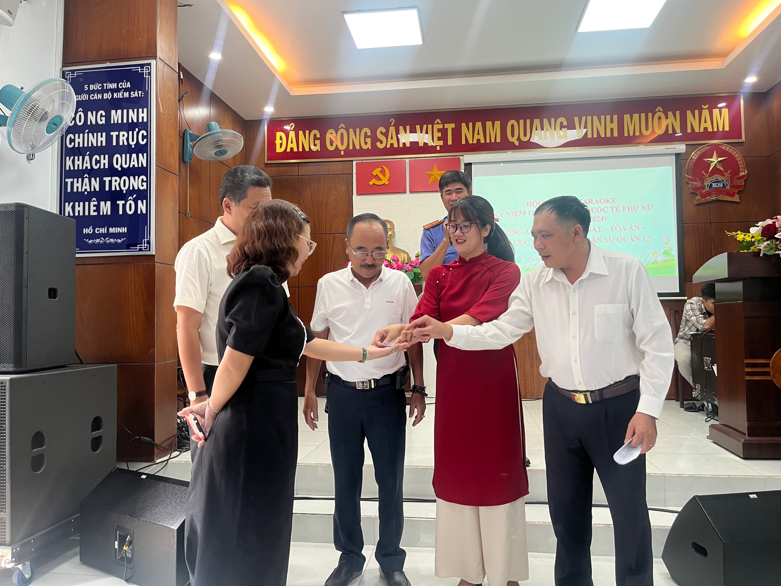 Chiều ngày 07/03/2024, tại Hội trường VKSND Quận 12 đã tổ chức thành công hội thi Karaoke. Đến dự có đồng chí Nguyễn Hồng Khanh - Phó Chủ tịch Liên đoàn lao động Quận 12, các đồng chí là Lãnh đạo các cơ quan Công an Quận, TAND Quận, VKSND Quận và Chi cục Thi hành án dân sự Quận 12 cùng đông đảo sự tham gia cổ vũ của công chức 4 cơ quan Khối Nội chính.