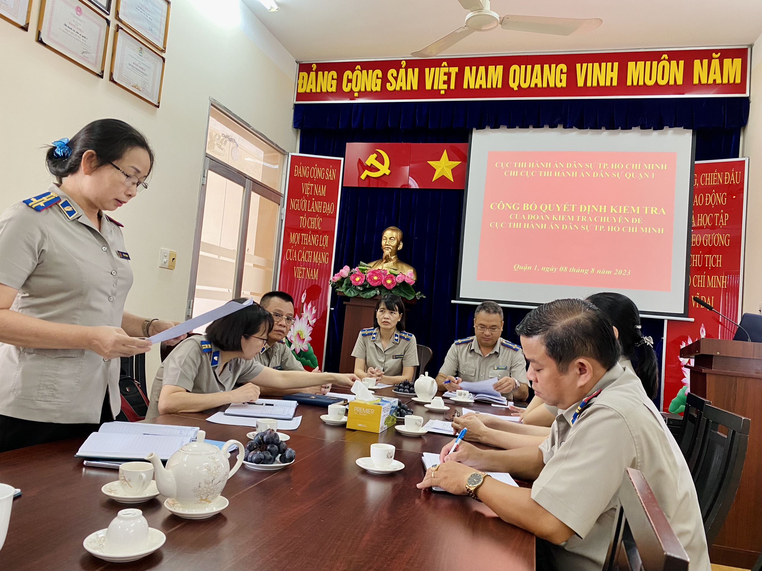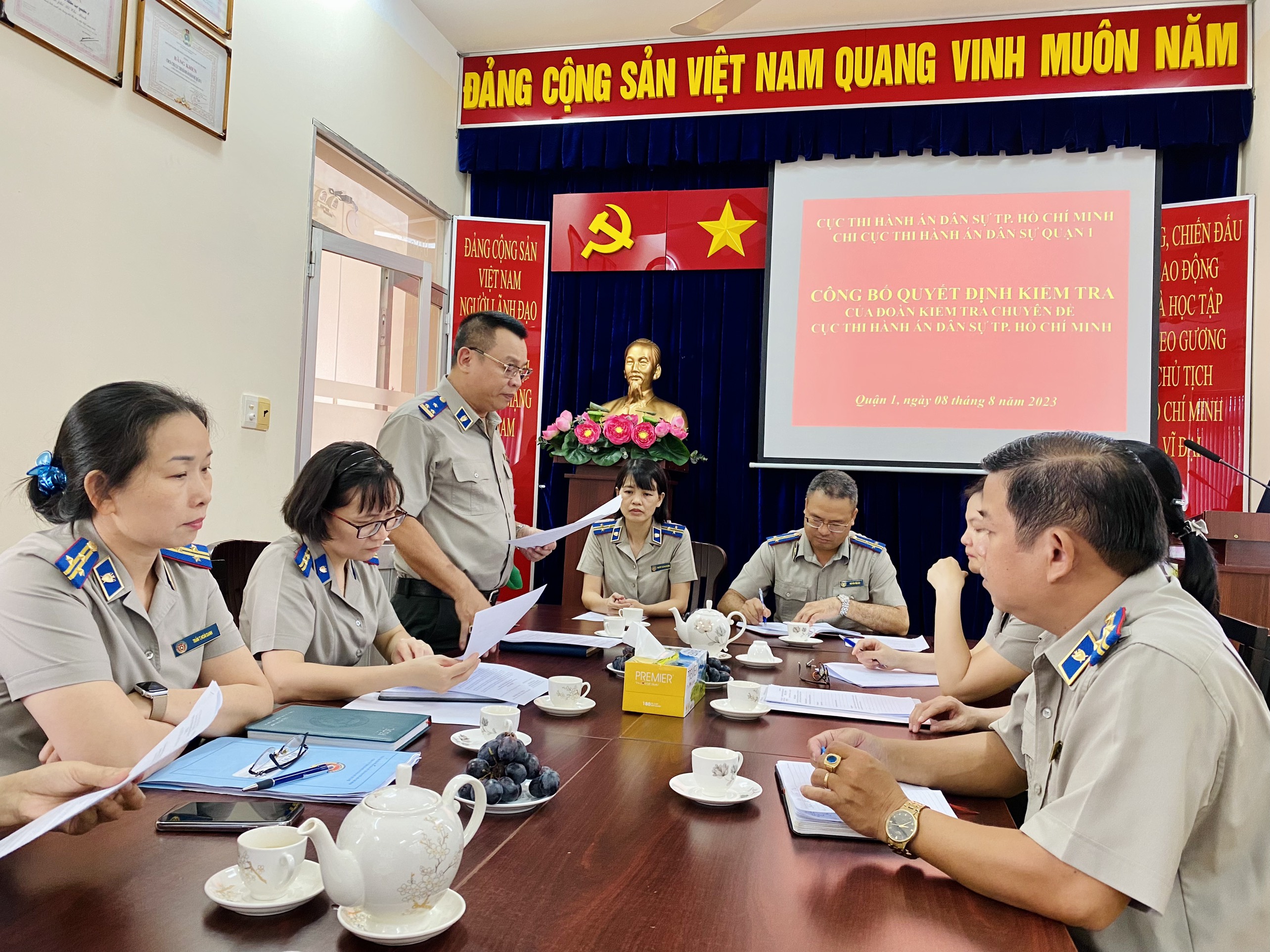 Sáng ngày 08/8/2023, Đoàn kiểm tra Cục Thi hành án dân sự Thành phố Hồ Chí Minh đã công bố Quyết định và kế hoạch kiểm tra chuyên đề trên đối với Chi cục Thi hành án dân sự Quận 1.