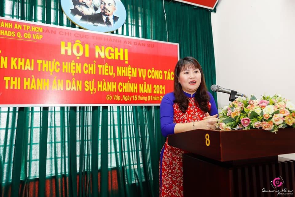 Phát biểu chỉ đạo tại hội nghị, Chủ tịch UBND quận Gò Vấp Nguyễn Thị Thanh Vân yêu cầu trong năm 2021: (i) Ban chỉ đạo cần tiếp tục tăng cường, đẩy mạnh hiệu quả hoạt động; phân công cụ thể để nâng cao vai trò, trách nhiệm của các thành viên Ban chỉ đạo trong và công tác phối hợp với cơ quan thi hành án trong thực hiện nhiệm vụ chuyên môn; (ii) Chi Cục THADS cần tiếp tục chủ động trong công tác tham mưu cho Ban Chỉ đạo để tham mưu với Quận ủy - UBND quận kịp thời chỉ đạo đối với các vụ việc phức tạp, đồng thời tổ chức thi hành án đảm bảo đúng trình tự, thủ tục; (iii) kiên quyết cưỡng chế thi hành các việc đủ điều kiện…(iv) rà soát, lập danh sách đưa ra xử lý dứt điểm đối với các loại vật chứng tồn đọng để sung công, tiêu hủy.