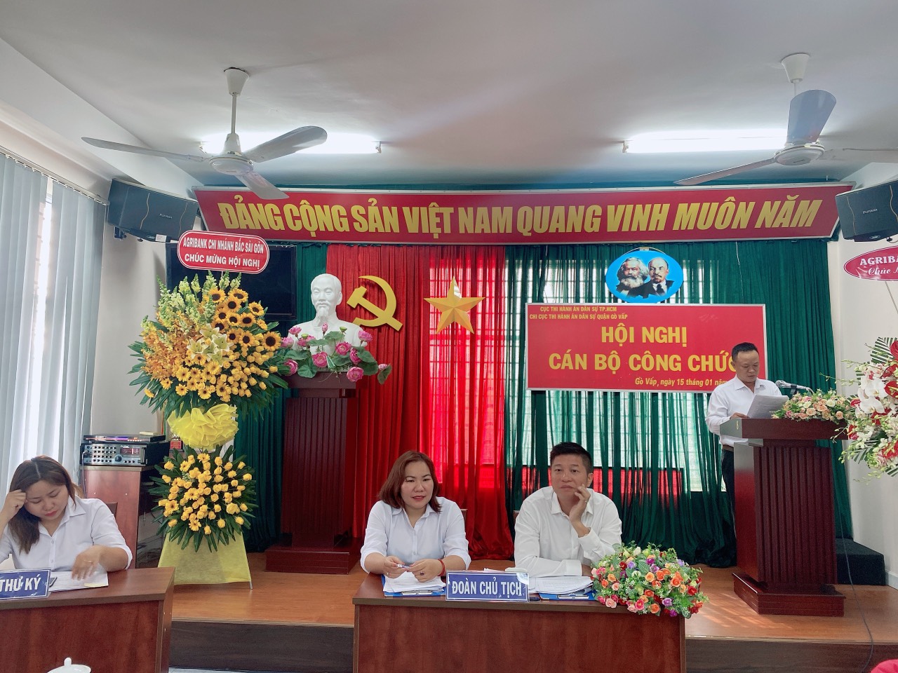 Sáng cùng ngày, Chi cục THADS quận Gò Vấp cũng tổ chức Hội nghị cán bộ công chức năm 2021. Tại hội nghị, các đại biểu đã được nghe thông qua các dự thảo: Báo cáo kết quả thực hiện Nghị quyết Hội nghị cán bộ, công chức năm 2020, phương hướng nhiệm vụ năm 2021; Báo cáo kết quả thực hiện quy chế dân chủ cơ sở năm 2020; Báo cáo tổng hợp ý kiến đóng góp của cán bộ chủ chốt và đảng viên, Chi ủy; Báo cáo đánh giá tổng kết và kiểm điểm trách nhiệm của người đứng đầu đơn vị trong việc thực hiện kế hoạch công tác năm 2020; Báo cáo hoạt động của Ban Thanh tra nhân dân năm 2020 và chương trình hoạt động của Ban Thanh tra nhân dân năm 2021; Báo cáo tổng kết phong trào thi đua năm 2020 và phương hướng nhiệm vụ năm 2021; Báo cáo tình hình sử dụng kinh phí đơn vị, Công đoàn năm 2020 và sửa đổi quy chế chi tiêu nội bộ đơn vị.