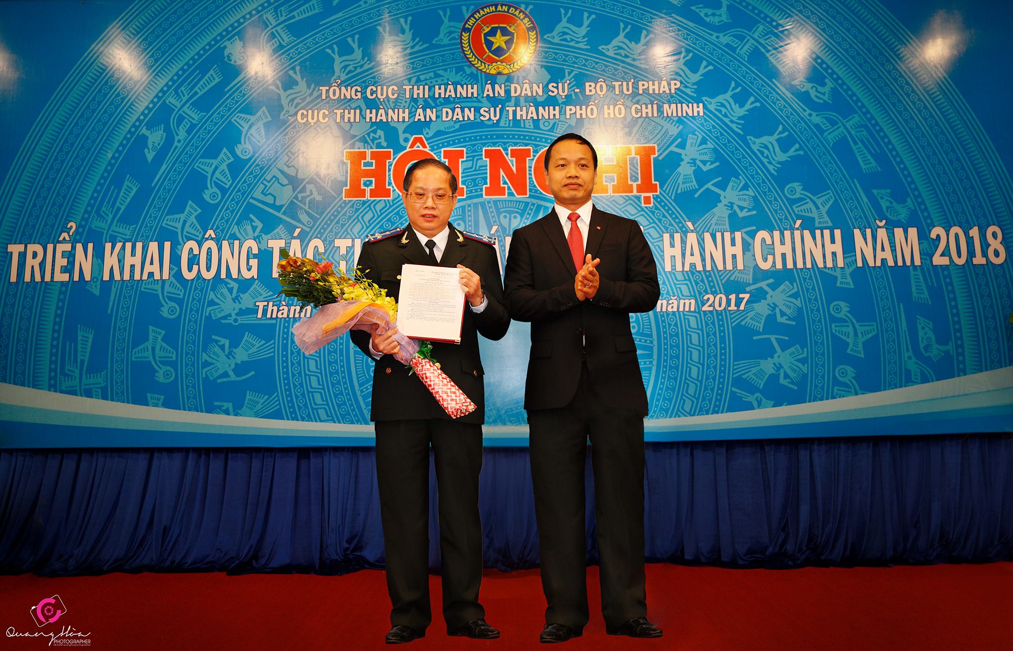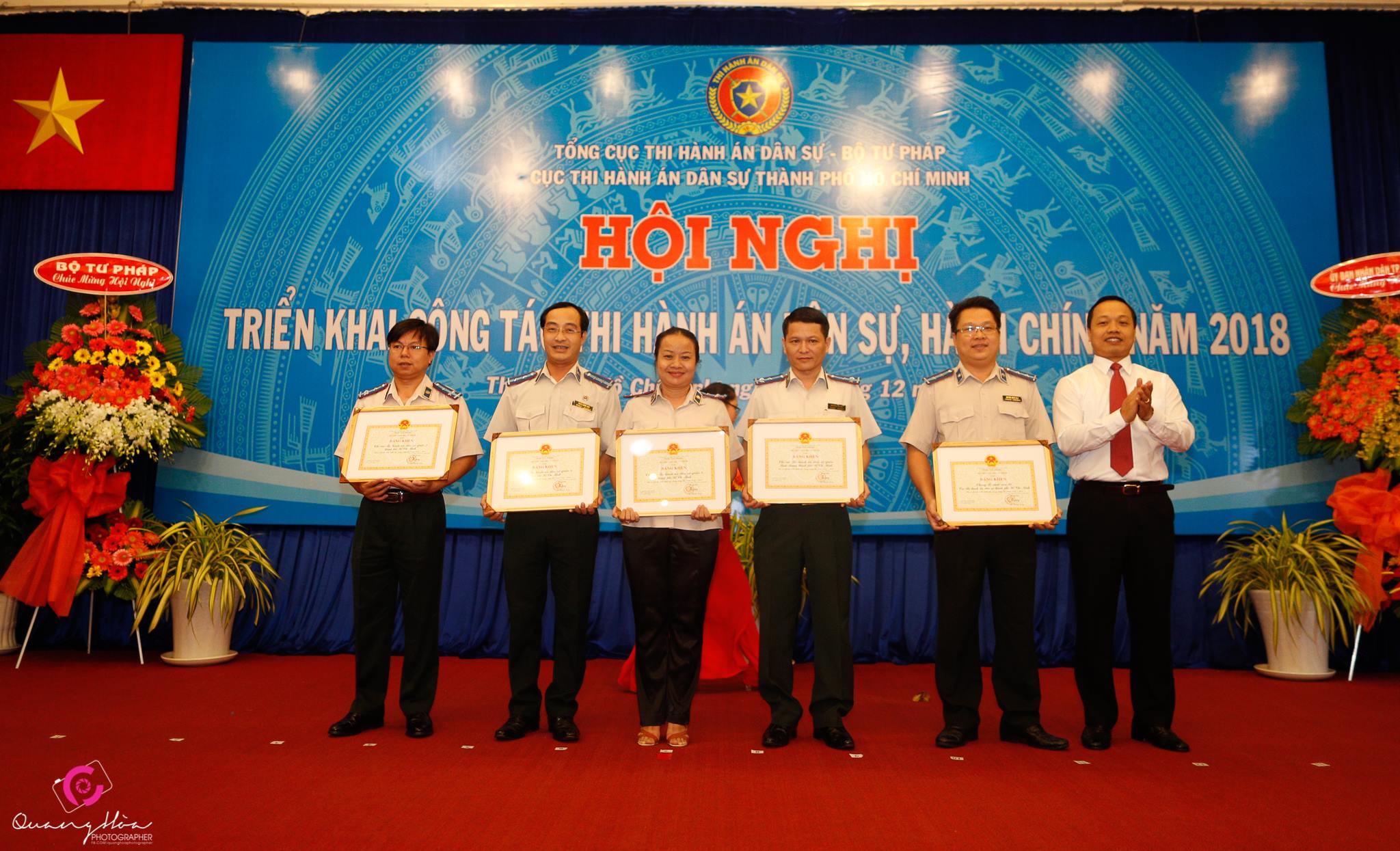 | Cũng trong dịp này, Bộ Tư pháp đã trao quyết định bổ nhiệm Cục trưởng Cục THADS cho ông Vũ Quốc Doanh (Quyền Cục trưởng). Ngoài ra, Bộ Tư pháp còn tặng bằng khen cho 5 tập thể gồm Phòng Tổ chức cán bộ, Chi cục THADS quận 7, quận 8, quận 9, quận Bình Thạnh và 14 cá nhân; công nhận danh hiệu tập thể lao động xuất sắc năm 2017 cho các đơn vị gồm Chi cục THADS quận 1, quận 3, quận 5, quận 7, quận 8, quận 9, quận 11, quận Bình Thạnh, quận Phú Nhuận. |