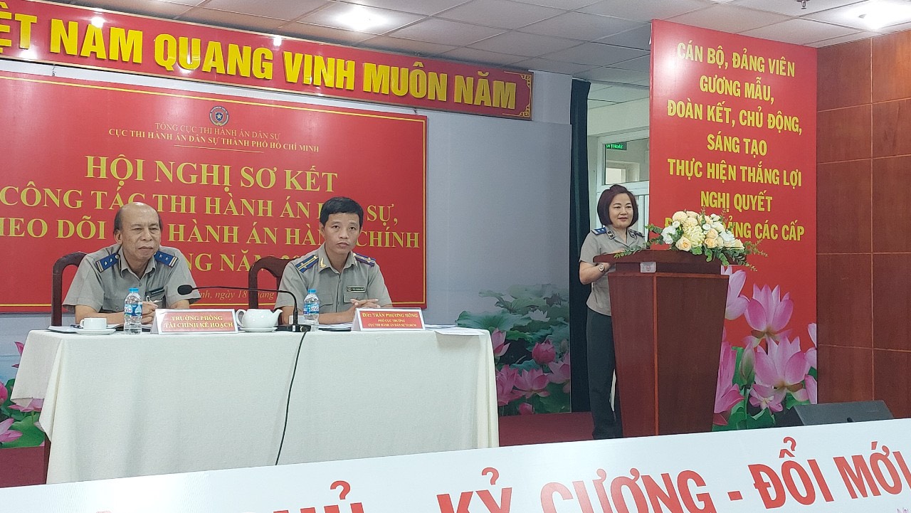 Chiều ngày 16.8, Tại trụ sở Cục Thi hành án dân sự (THADS) Thành phố Hồ Chí Minh, Cục THADS thành phố đã tổ chức giao ban công tác tài chính kế toán nhằm tăng cường hơn nữa việc thực hiện các hoạt động tài chính kế toán toàn thành phố. Phó Cục trưởng Trần Phương Hồng tham dự và chủ trì Hội nghị. Tham dự Hội nghị có Lãnh đạo Phòng Kế hoạch - Tài Chính, các kế toán viên thuộc Cục; Kế toán trưởng, Phụ trách kế toán và kế toán viên các Chi cục THADS quận, huyện, thành phố Thủ Đức.