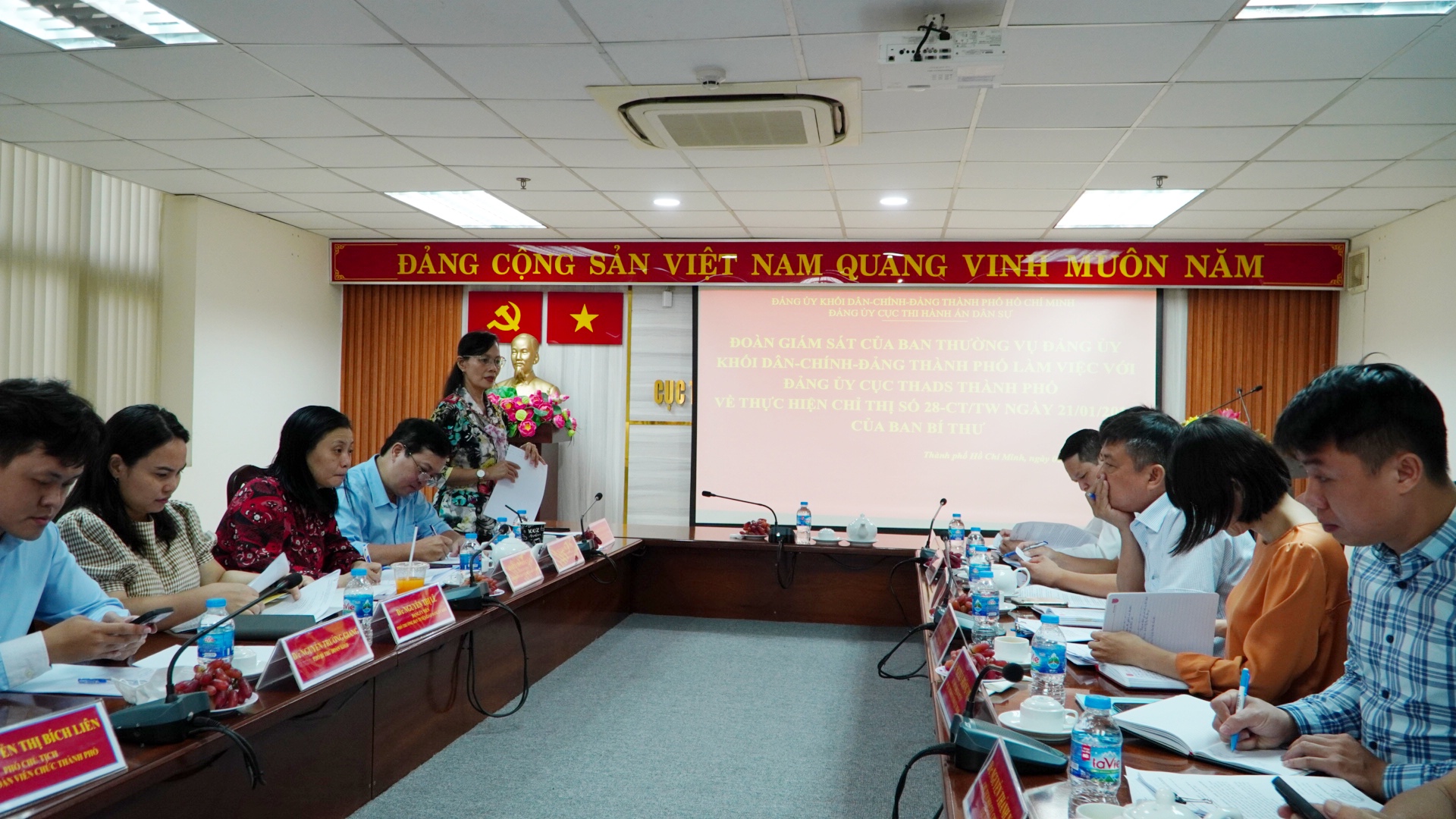 Sáng 02.11, tại Cục Thi hành án dân sự (THADS) Thành phố Hồ Chí Minh, Đoàn Giám sát của Ban Thường vụ Đảng ủy Khối – Dân – Chính - Đảng Thành phố đã tiến hành giám sát việc thực hiện Chỉ thị 28-CT/TW ngày 21/1/2019 của Ban Bí thư Trung ương Đảng (Khóa XII) về nâng cao chất lượng kết nạp đảng viên và rà soát, sàng lọc đưa những đảng viên không còn đủ tư cách ra khỏi Đảng tại Đảng bộ Cục THADS Thành phố.