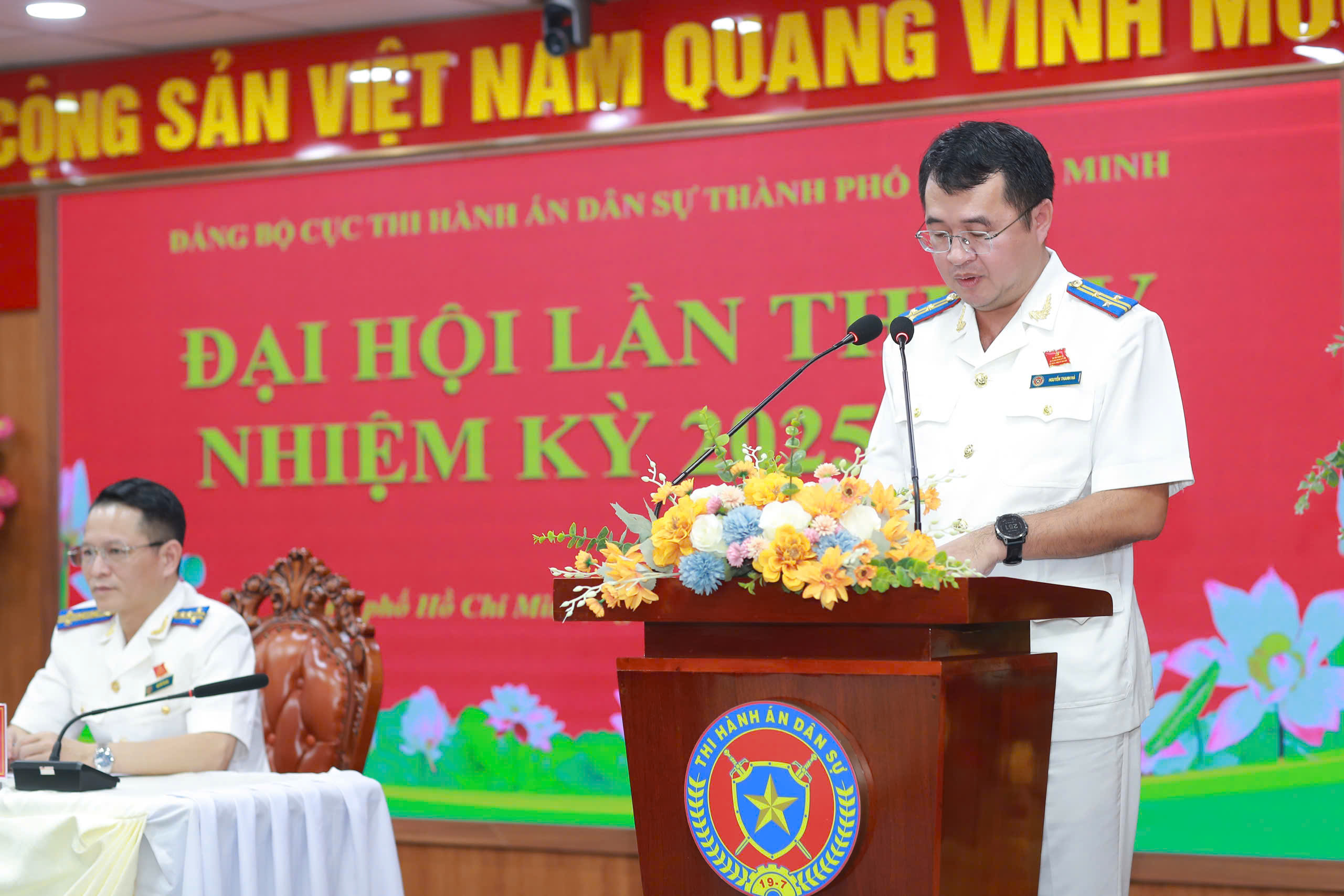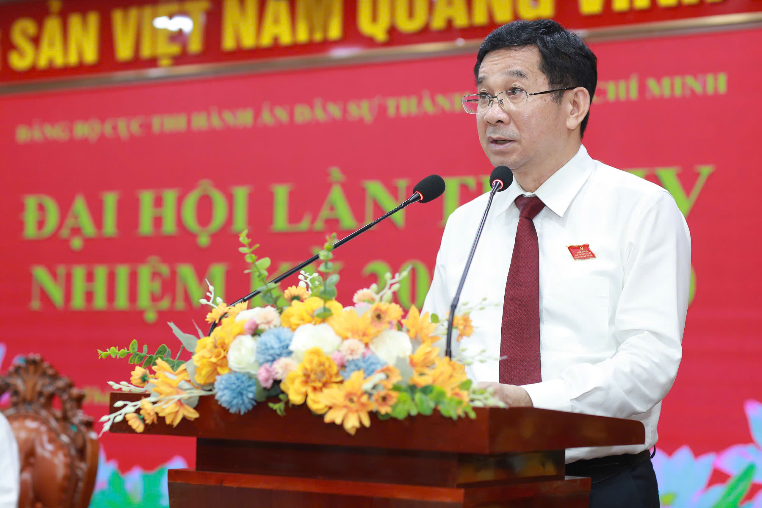 Trước yêu cầu tinh gọn tổ chức bộ máy, trong đó có chủ trương sáp nhập địa giới hành chính một số địa phương như Bình Dương, Bà Rịa – Vũng Tàu, đồng chí yêu cầu Đảng bộ chủ động chuẩn bị về tổ chức, tư tưởng và phương án nhân sự. Đồng thời, tiếp tục phát huy vai trò là lực lượng nòng cốt trong thi hành các vụ án lớn, góp phần giữ gìn ổn định xã hội, bảo vệ quyền và lợi ích hợp pháp của Nhà nước và Nhân dân. Đồng chí tin tưởng, sau Đại hội, Đảng bộ sẽ tiếp tục phát huy tinh thần đoàn kết, đổi mới, hoàn thành xuất sắc nhiệm vụ nhiệm kỳ mới, xây dựng hệ thống thi hành án dân sự Thành phố tinh gọn, hiện đại, hiệu quả.