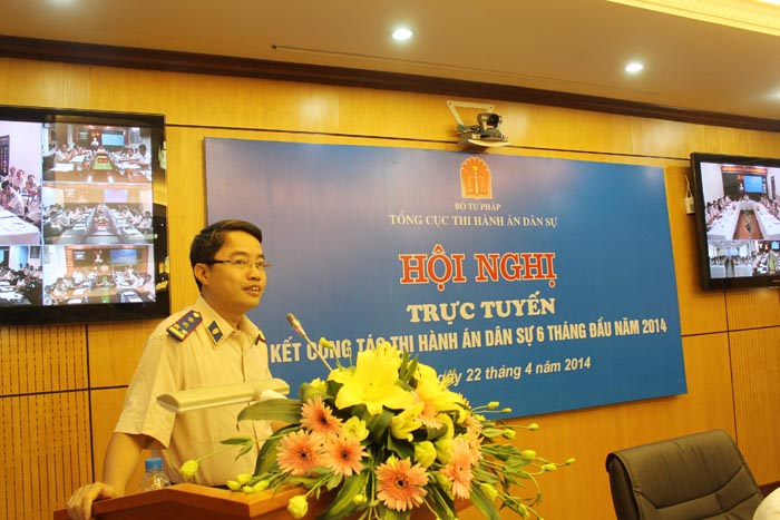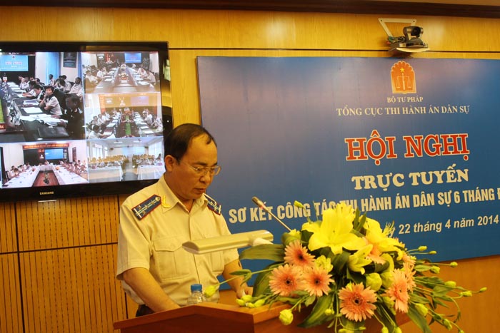 Hội nghị sơ kết công tác thi hành án dân sự toàn quốc 6 tháng đầu năm 2014 23/04/2014 | Sáng nay (22/4), tại trụ sở Bộ Tư pháp, Tổng cục Thi hành án dân sự đã tổ chức Hội nghị sơ kết công tác thi hành án dân sự 06 tháng đầu năm 2014 bằng hình thức giao ban trực tuyến tại 07 điểm cầu: Hà Nội, Yên Bái, Hà Tĩnh, Đà Nẵng, Đăk Lăk, thành phố Hồ Chí ...