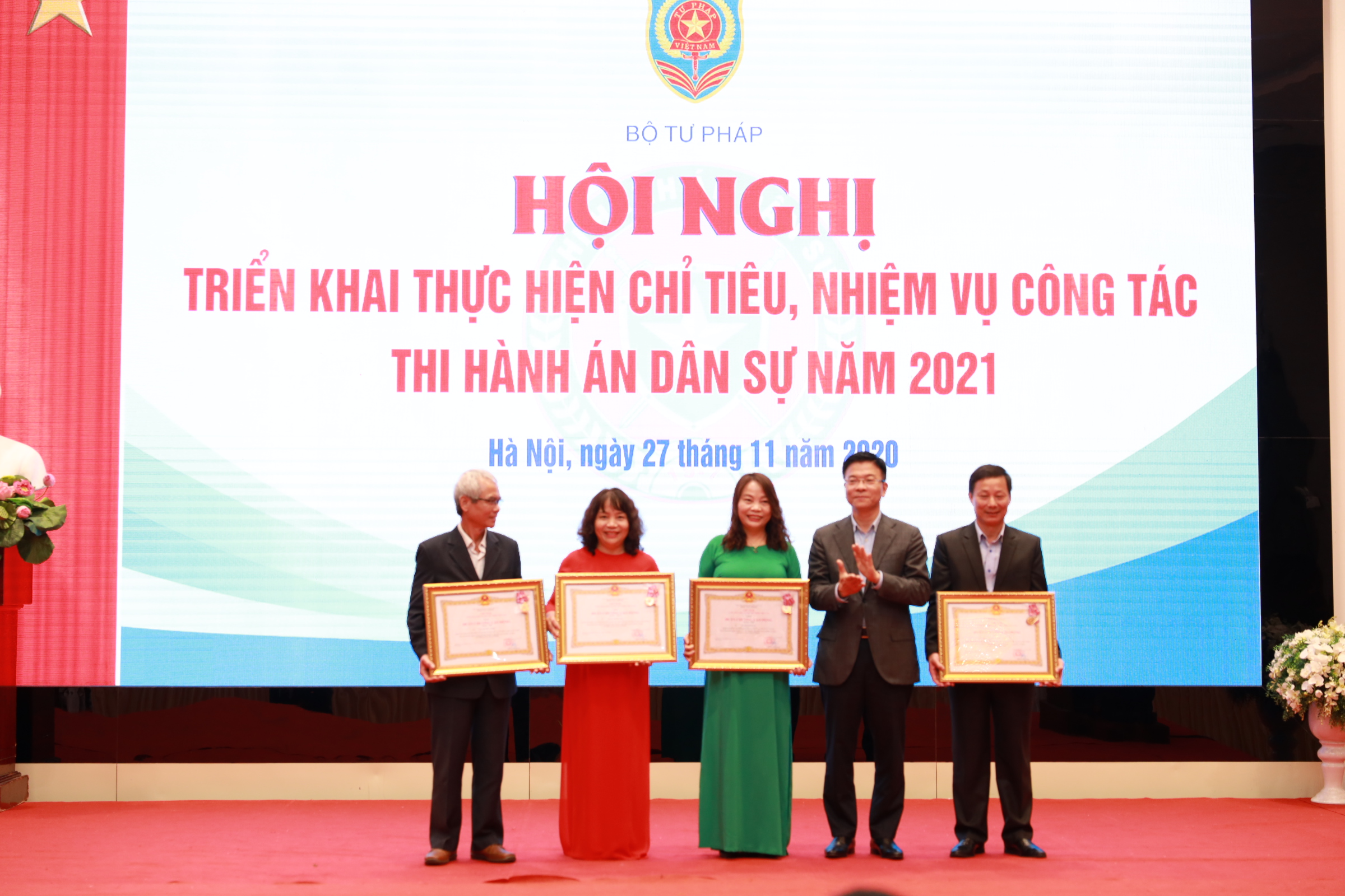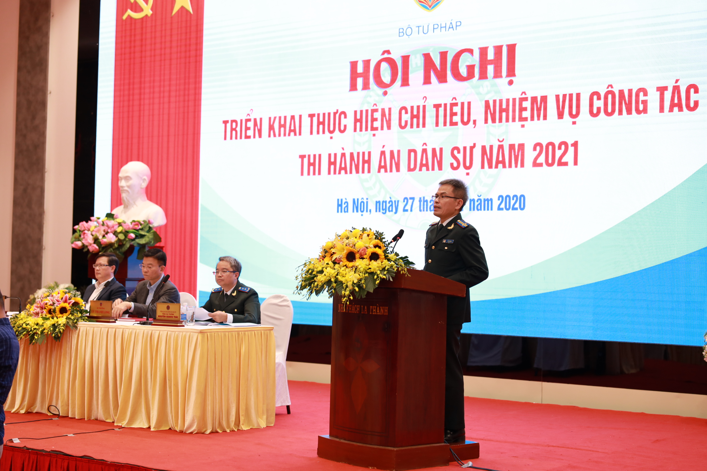 Chiều 27/11/2020, tại Hà Nội, Bộ Tư pháp đã tổ chức Hội nghị triển khai thực hiện chỉ tiêu, nhiệm vụ công tác thi hành án dân sự năm 2021. Ủy viên BCHTW Đảng, Bí thư Ban Cán sự Đảng, Bộ trưởng Bộ Tư pháp Lê Thành Long dự và chỉ đạo Hội nghị.