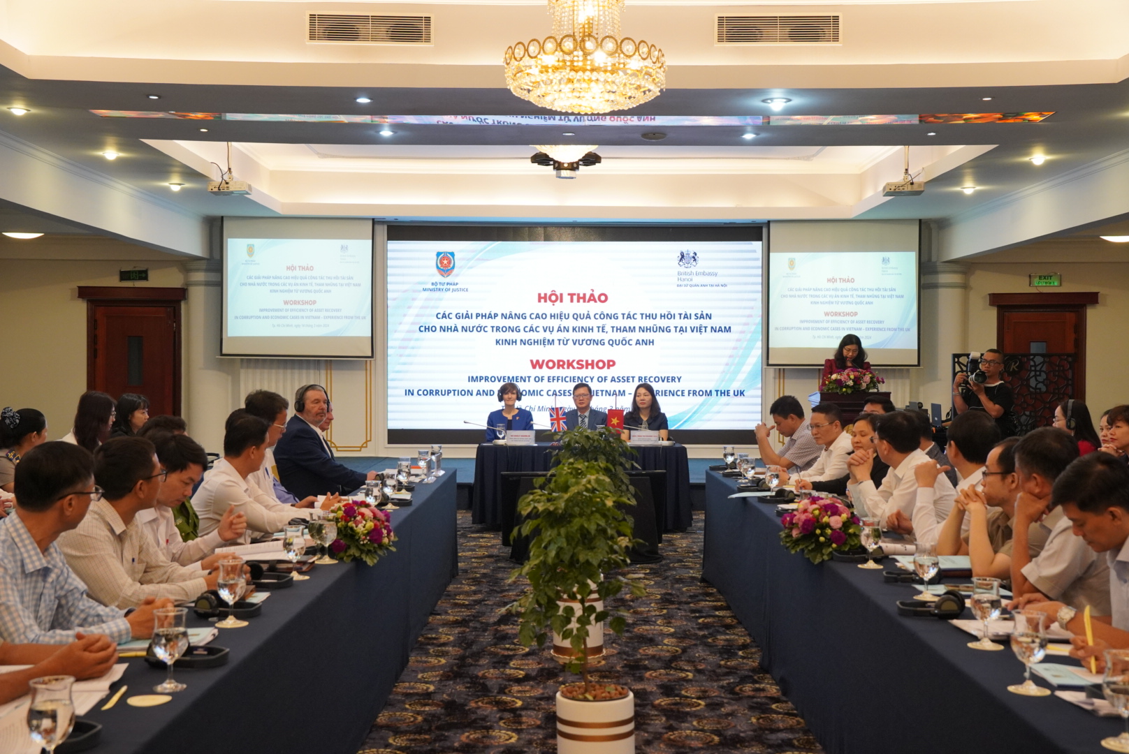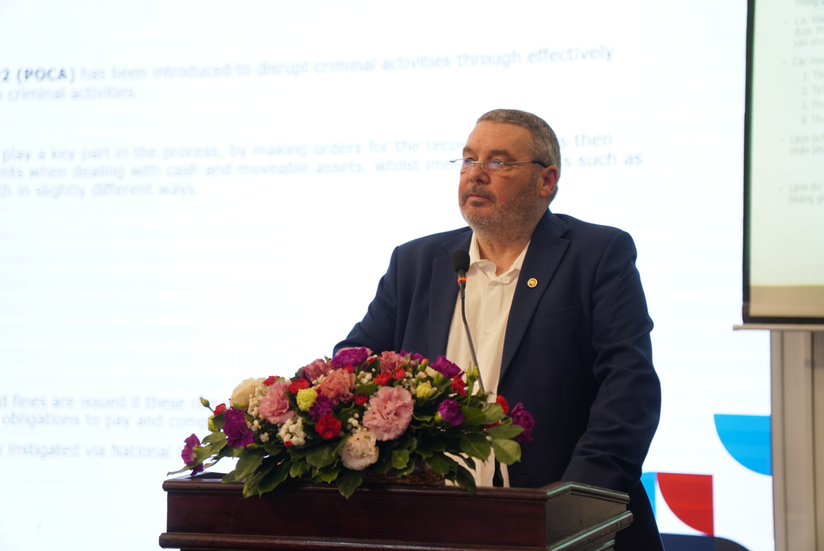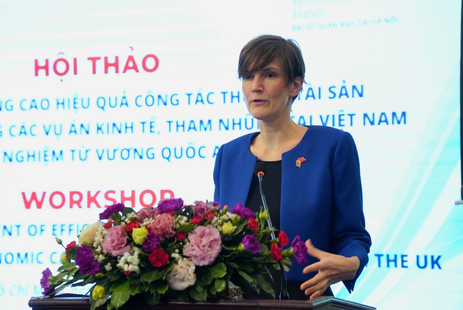 Về phần mình, các chuyên gia đến từ Anh Quốc là ông Michael Jackson và ông Alan Smith đã lần lượt chia sẻ kinh nghiệm của Vương quốc Anh về trình tự, thủ tục thu hồi tài sản theo thủ tục hình sự trong các vụ án tham nhũng, kinh tế của Vương quốc Anh; Thực tiễn về quá trình số hóa, ứng dụng CNTT (các phần mềm, dữ liệu và kết nối...) trong hoạt động THADS nói chung và thu hồi tài sản nói riêng; Cạnh đó còn có kinh nghiệm thu hồi tài sản thông qua cơ chế dân sự và thuế, các cơ chế hợp tác, phối hợp với các tổ chức quốc tế, các quốc gia trong quá trình phòng chống tội phạm, thu hồi tài sản của Vương quốc Anh. Các đại biểu cũng từ thực tiễn công tác THADS Vương quốc Anh đưa ra nhiều khuyến nghị cho Việt Nam...