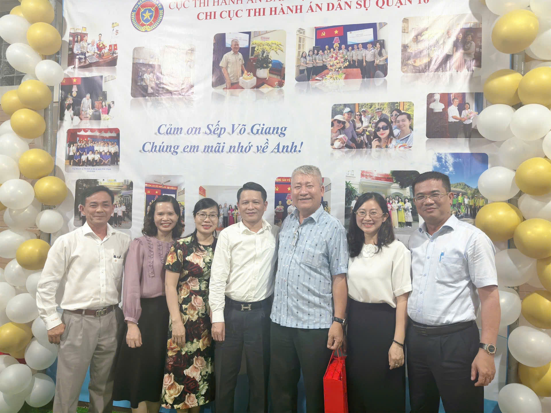 Khi đồng chí bước vào chương mới của cuộc đời, chúng tôi tin rằng những kỷ niệm đẹp tại Chi cục Thi hành án dân sự quận 10 sẽ luôn theo đồng chí. Xin cảm ơn đồng chí Võ Giang vì tất cả những gì đồng chí đã làm cho chúng tôi và cho Chi cục Thi hành án quận 10. Kính chúc đồng chí Võ Giang sức khỏe, hạnh phúc và những điều tốt đẹp nhất trong tương lai!
