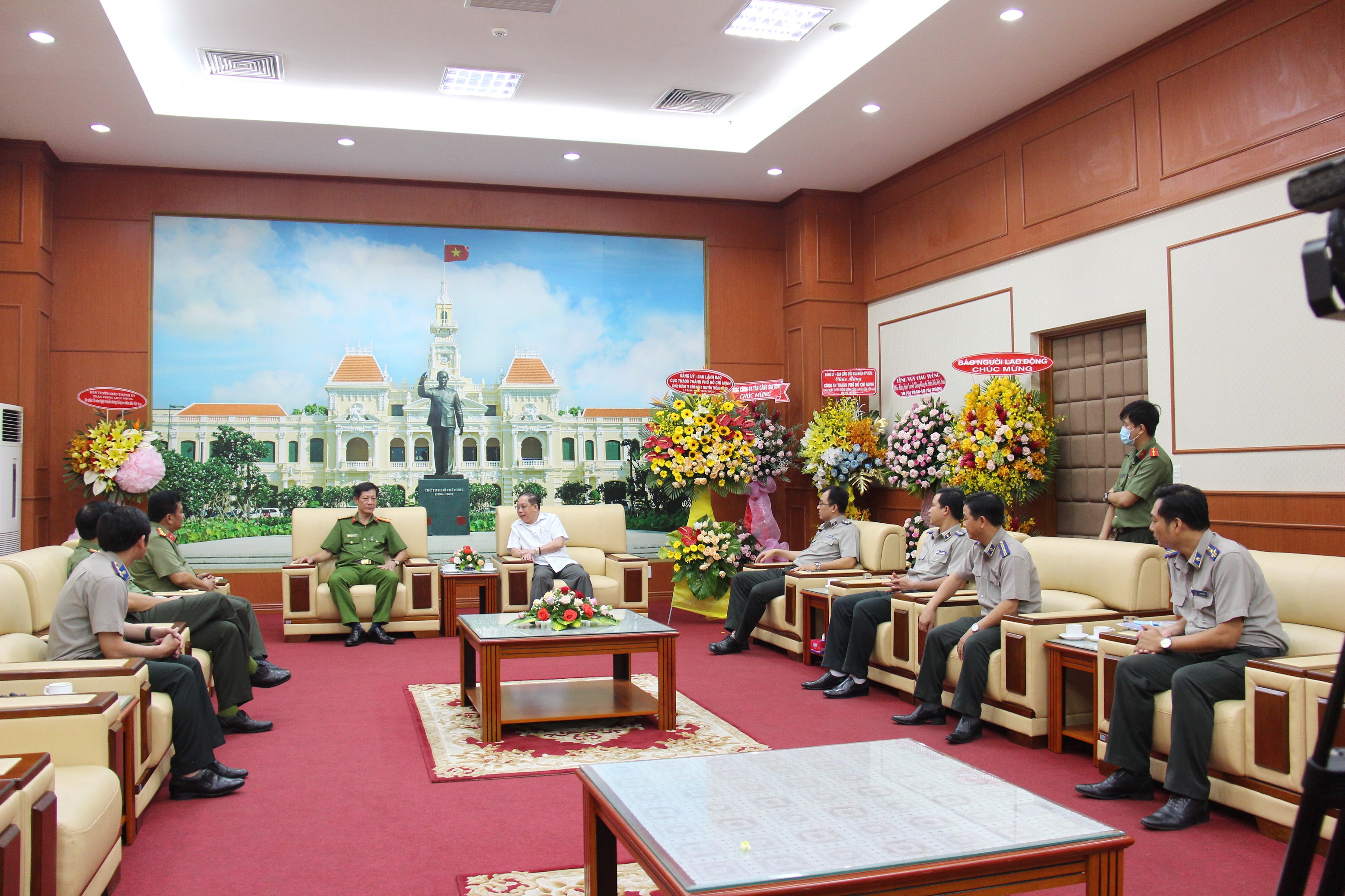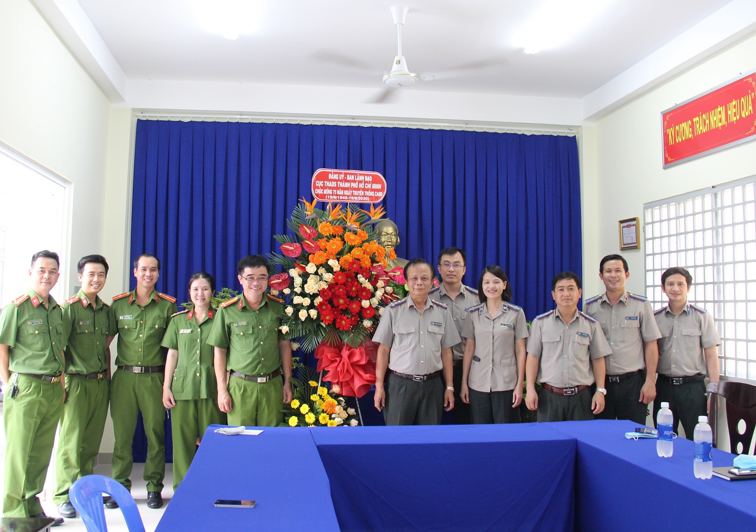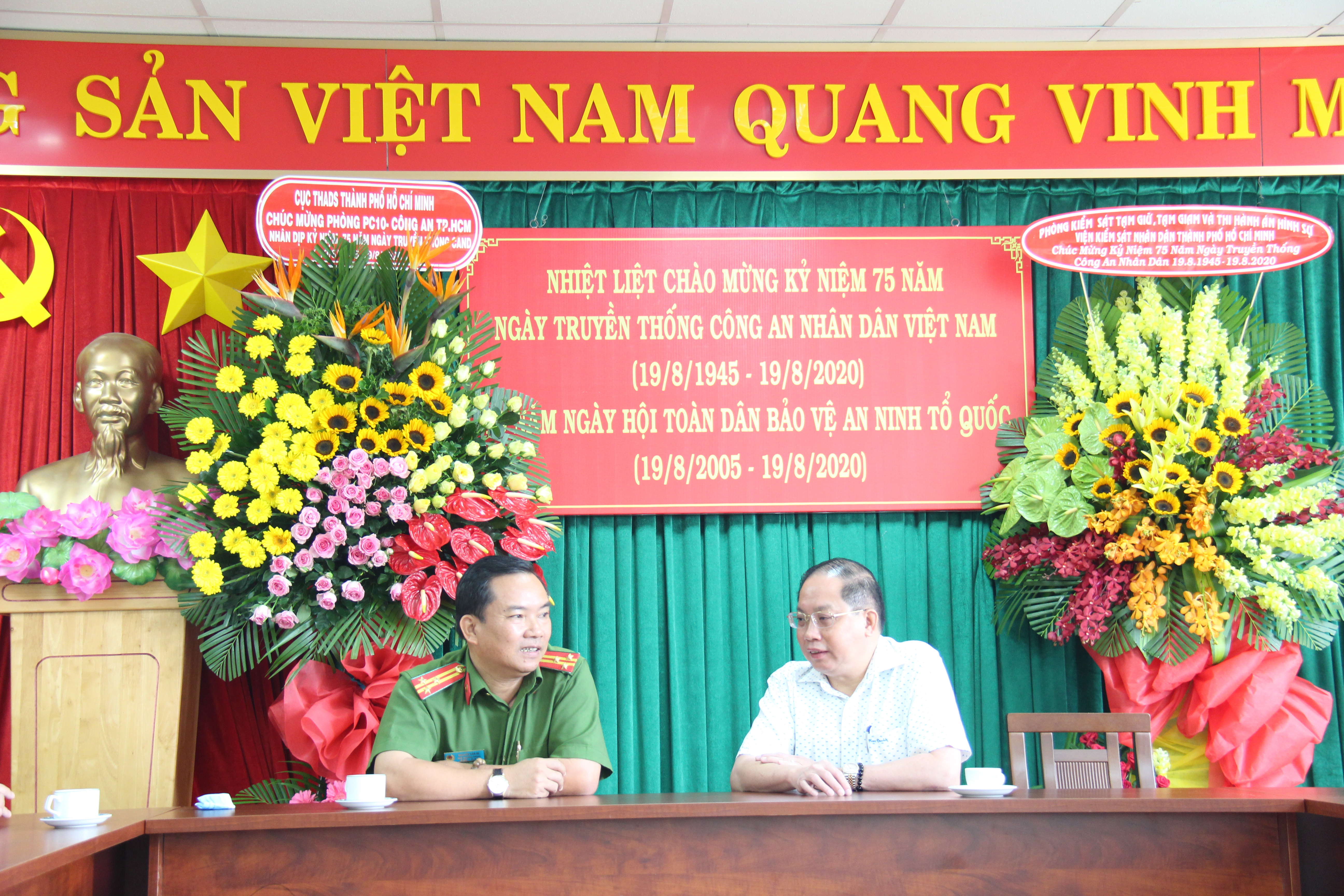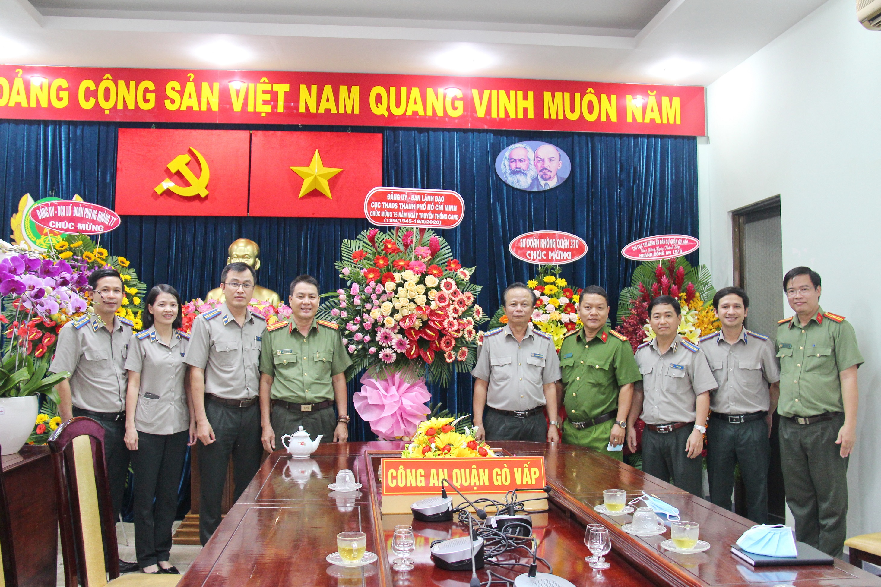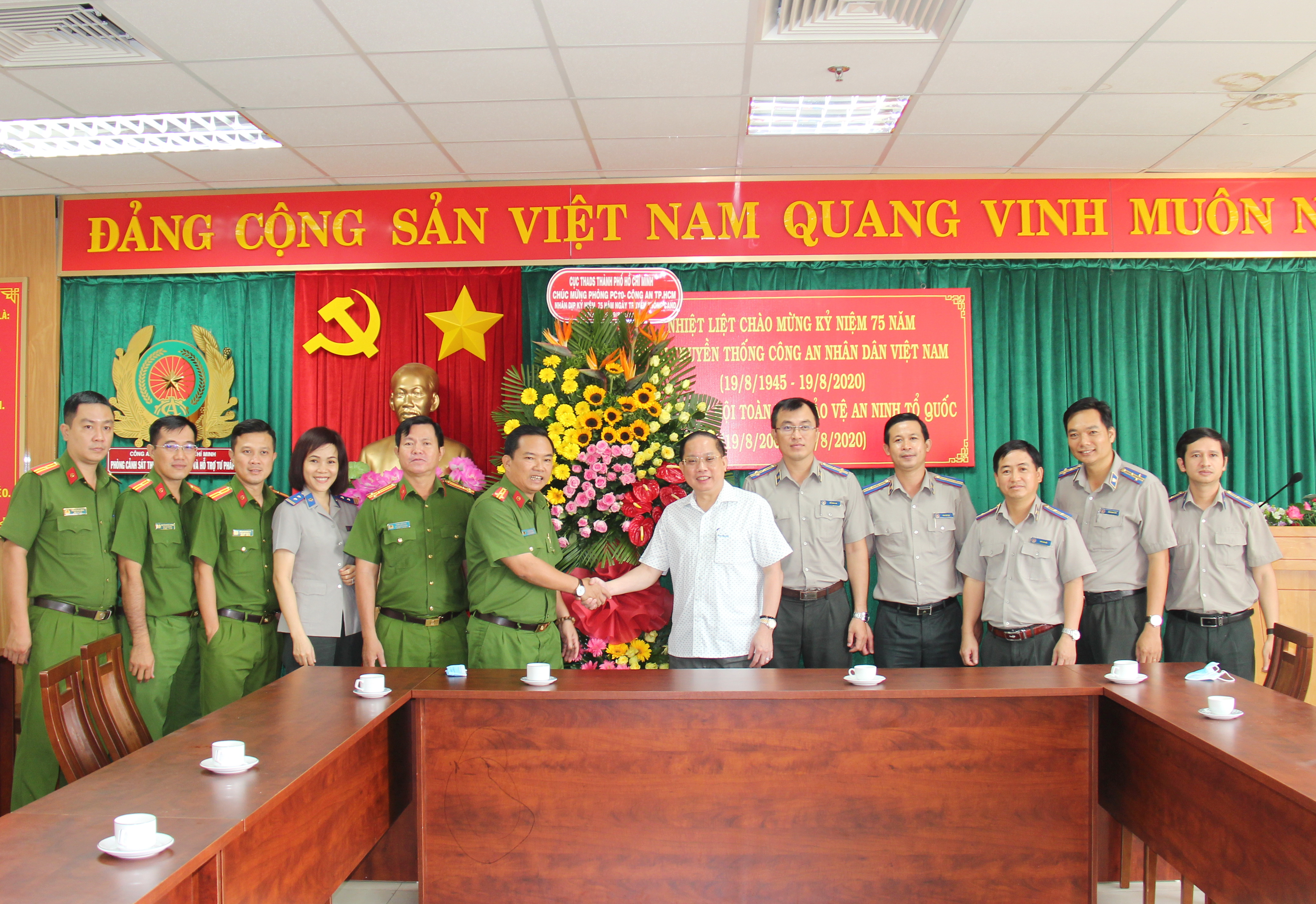 Nhân dịp kỷ niệm 75 năm Ngày truyền thống Công an nhân dân (CAND) Việt Nam (19-8-1945 / 19-8-2020), 15 năm Ngày hội Toàn dân bảo vệ an ninh (BVAN) Tổ quốc (19-8-2005 / 19-8-2020). Sáng 18-8, Bí Thư Đảng ủy, Cục trưởng Cục THADS thành phố Vũ Quốc Doanh tới chúc mừng Công an thành phố Hồ Chí Minh