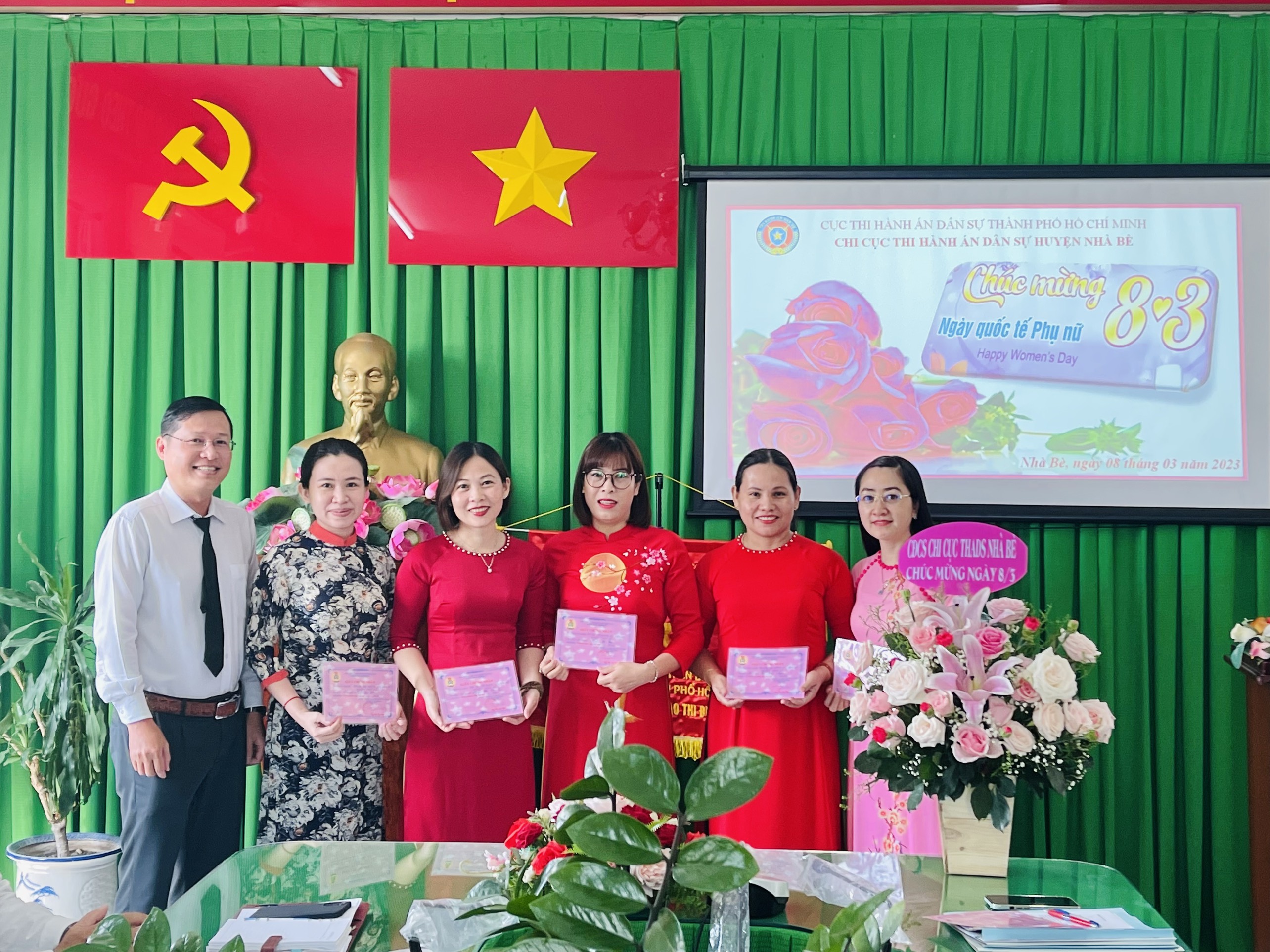 Thay mặt tập thể nữ Công chức và người lao động tại Chi cục Thi hành án dân sự huyện Nhà Bè, bà Nguyễn Thị Thương – Chủ tịch Công đoàn cơ sở đã đón nhận lẵng hoa tươi thắm đồng thời gửi lời cảm ơn sâu sắc đến ông Trương Công Thành cùng tập thể nam Công chức và Người lao động tại Chi cục đã dành những tình cảm và những lời chúc ý nghĩa nhất – đó là động lực, là món quà tinh thần quý báu nhất cho tập thể nữ Công chức và Người lao động phấn đấu vì gia đình, vì sự nghiệp hôm nay và mai sau./.
