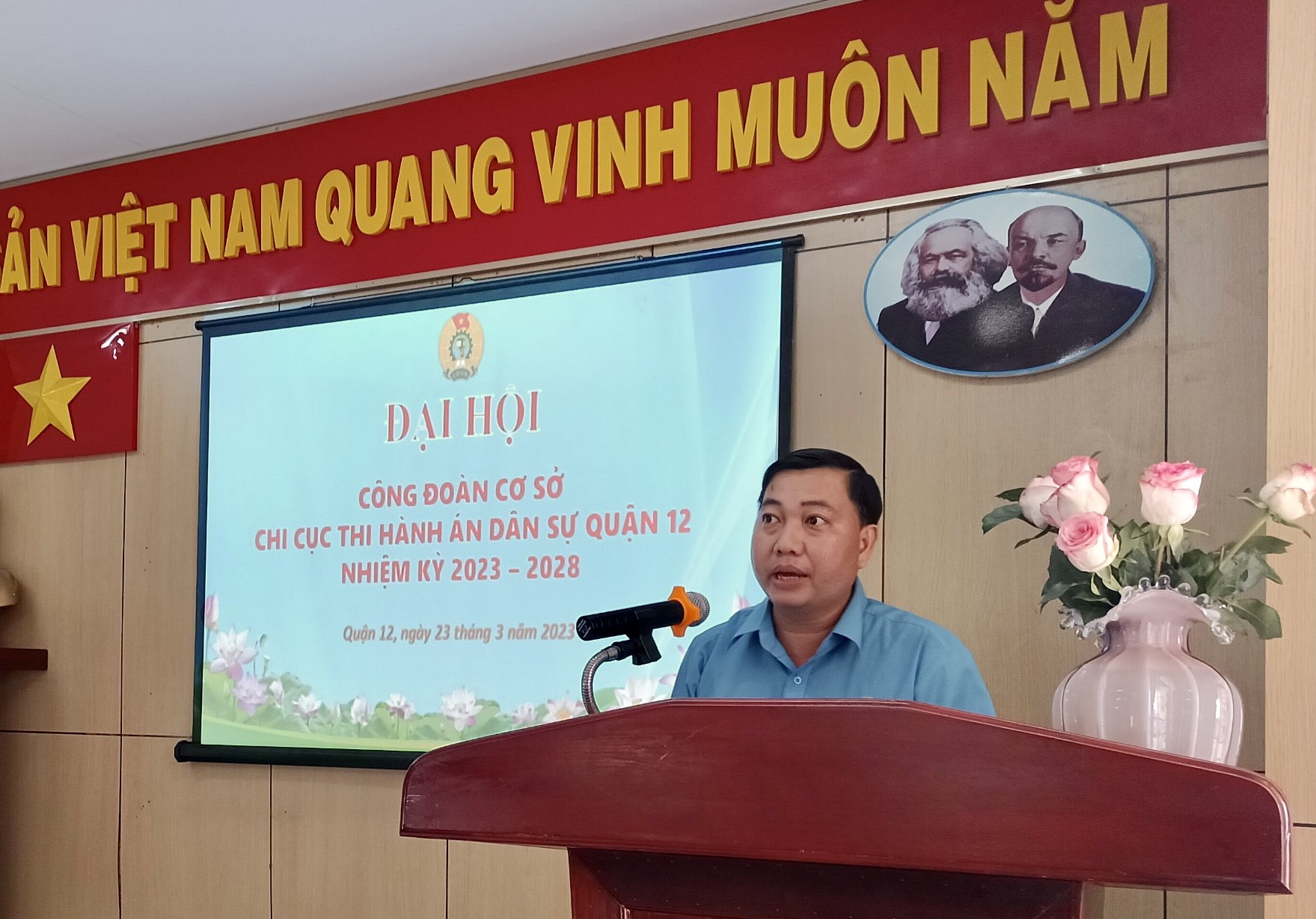 Sáng ngày 23.3, tại Chi cục Thi hành án dân sự (THADS) Quận 12, Công đoàn cơ sở Chi cục THADS Quận đã tổ chức Đại hội Công đoàn cơ sở (nhiệm kỳ 2023 - 2028). Đến tham dự có ôngTrần Minh Tâm - Phó chủ tịch Liên đoàn lao động (LĐLĐ) Quận, ông Nguyễn Trọng Thiệm, Bí thư Chi bộ, Chi cục trưởng Chi cục THADS Quận, Ban Chấp hành công đoàn và toàn thể đoàn viên công đoàn Chi cục THADS Quận 12.