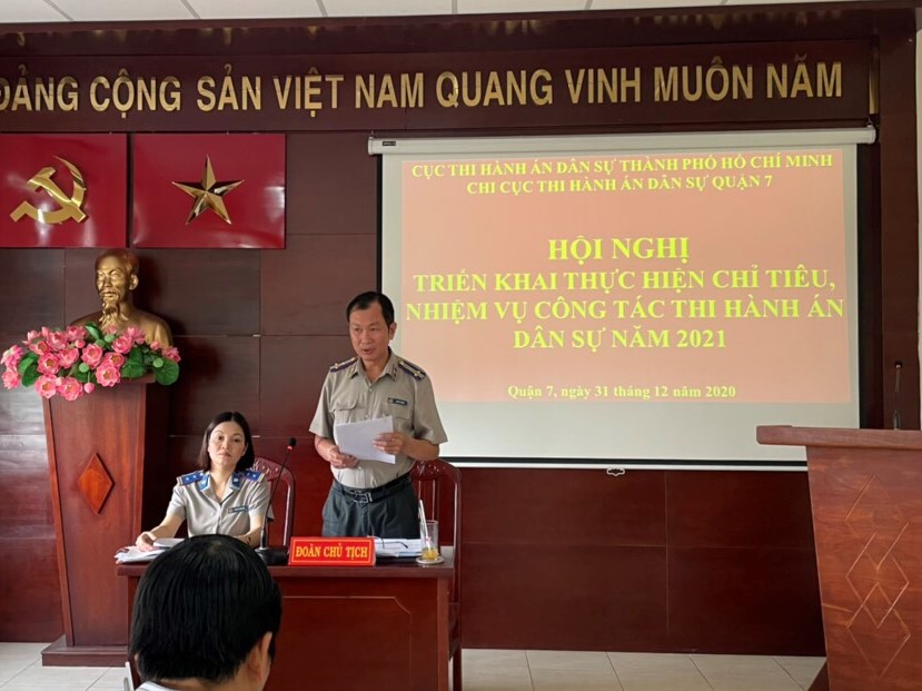 Thời gian qua, Chi cục Thi hành án dân sự (THADS) Quận 7 đã nhận được sự quan tâm, chỉ đạo sâu sát, của Cục THADS thành phố Hồ Chí Minh, Quận ủy, UBND Quận. Cùng với sự đổi mới, linh hoạt trong quản lý điều hành của lãnh đạo Chi cục, đặc biệt việc ứng dụng công nghệ thông tin trong quản lý điều hành và quản lý hồ sơ thi hành án, thực hiện quy trình “một cửa” đối với một số thủ tục hành chính trong thi hành án, do vậy Quận 7 đã hoàn thành tốt nhiệm vụ được giao.