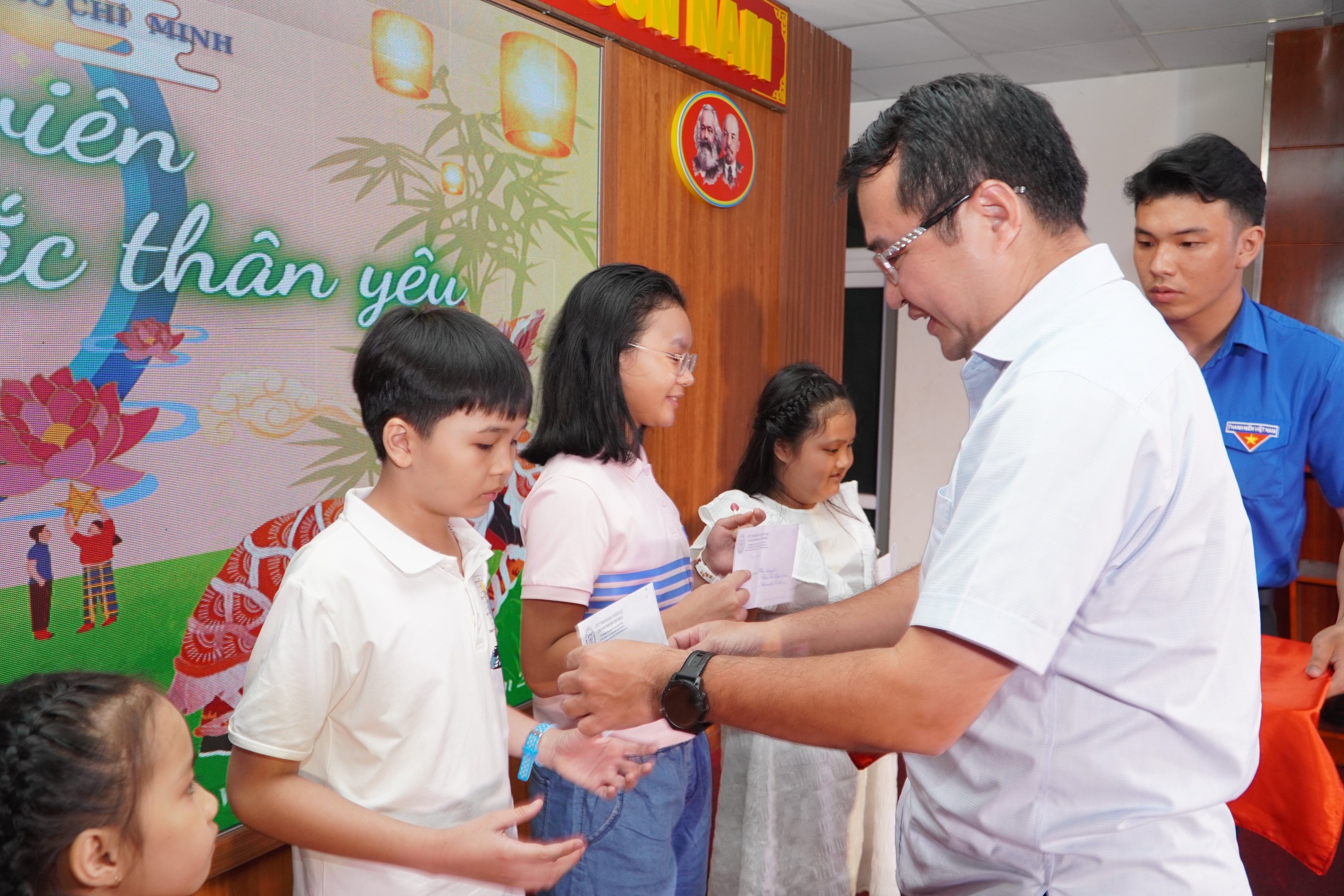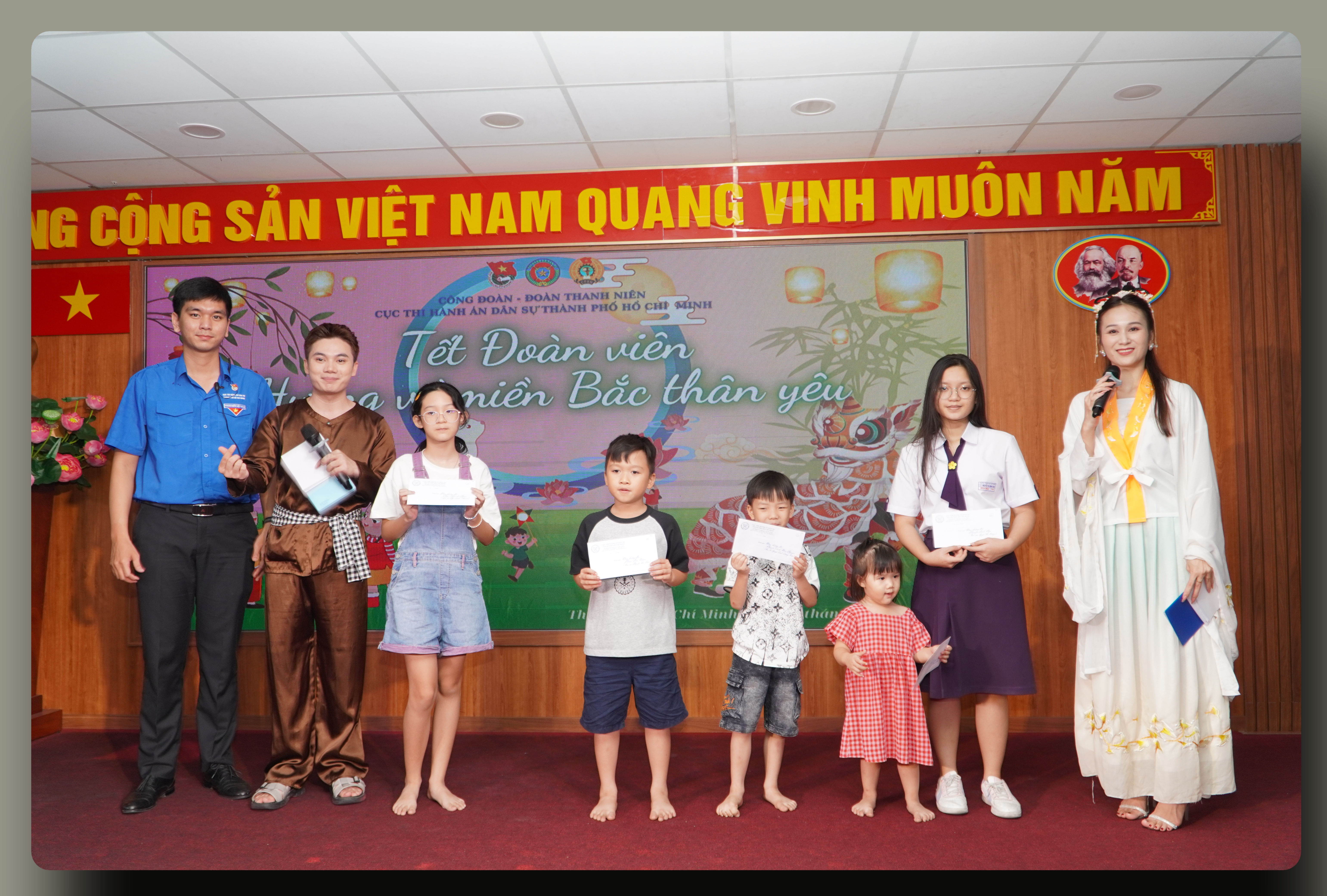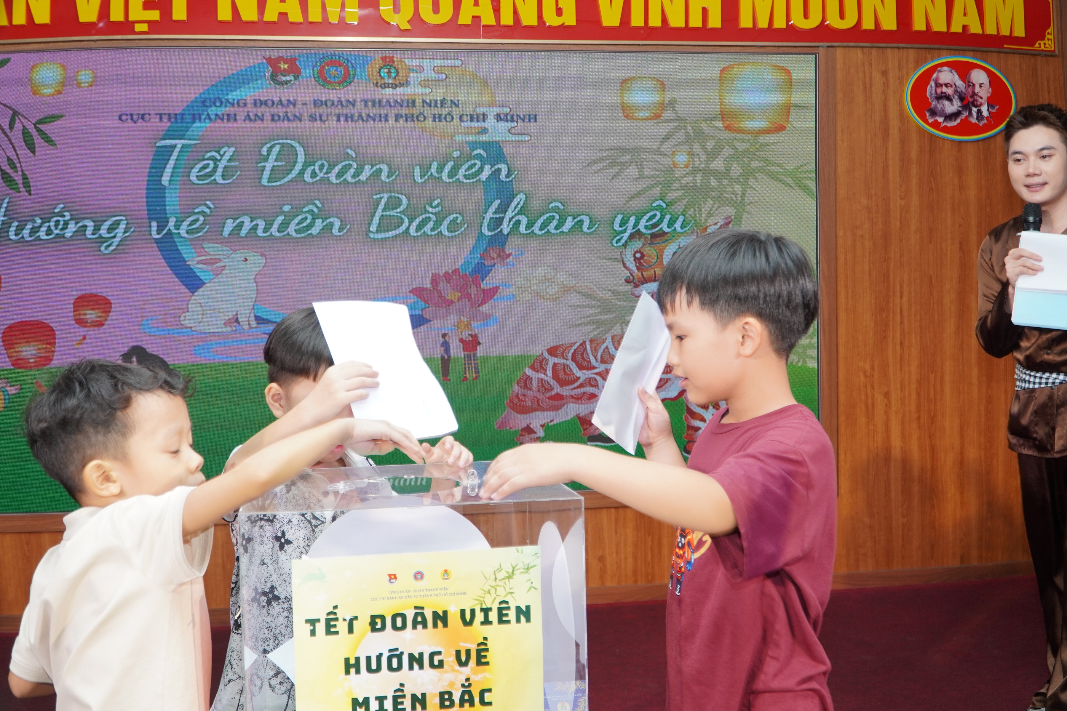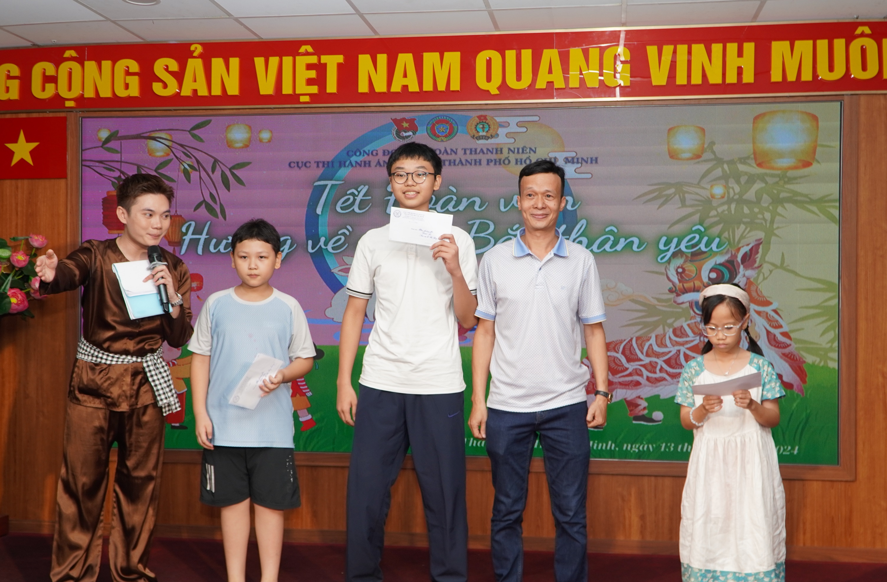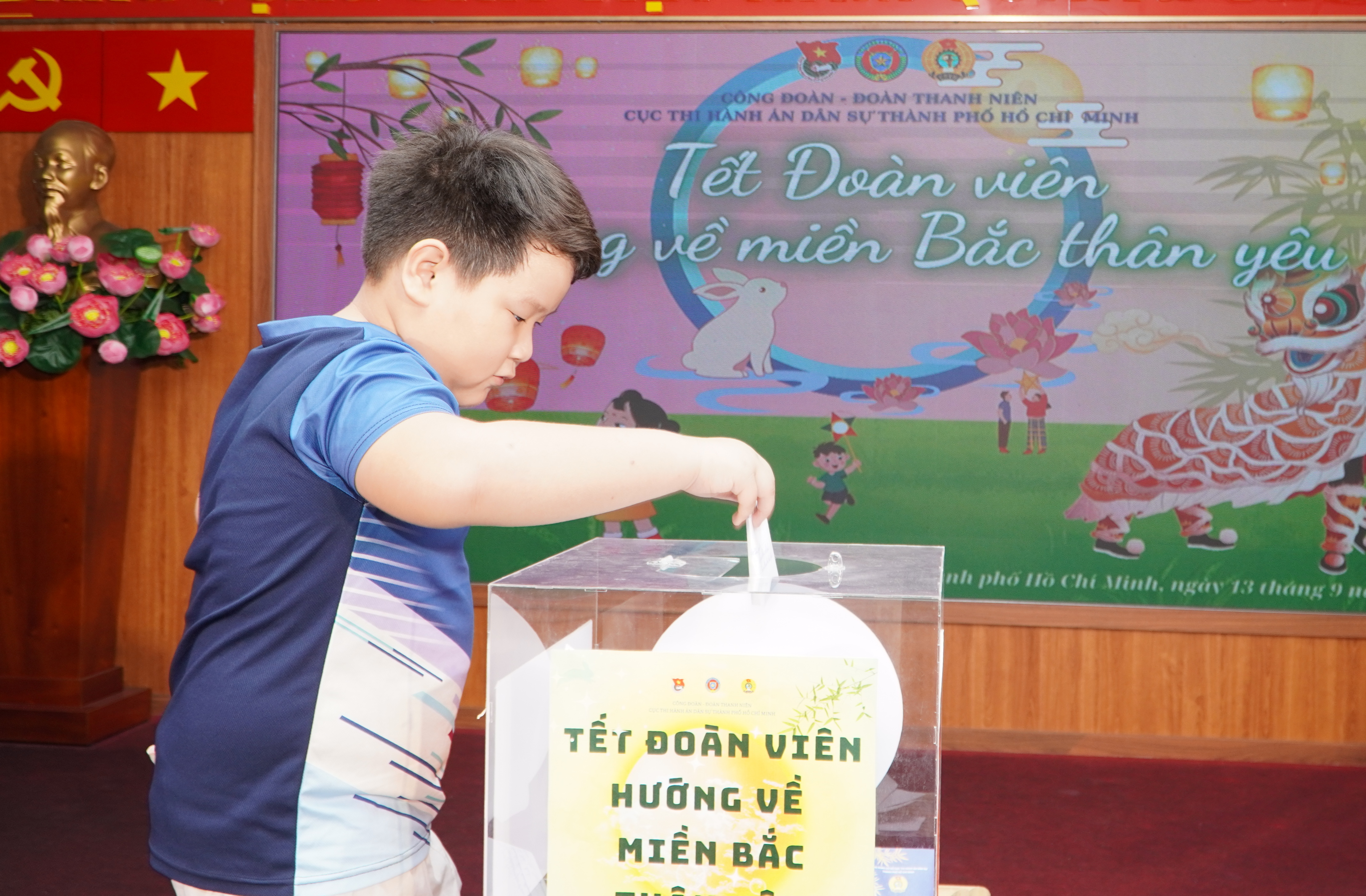Chính vì vậy, Công đoàn cơ sở và Đoàn thanh niên Cục THADS TP.HCM đã thay đổi kế hoạch tổ chức “ Đêm hội Trăng rằm” thành chủ đề “Tết đoàn viên hướng về Miền Bắc Thân Yêu”, gồm các nội dung: trao thưởng cho các bạn nhỏ đã có có thành tích học tập tốt năm học 2023-2024; giao giao lưu, tham gia các trò chơi; phá cỗ trung thu…Bên cạnh các hoạt động sôi nổi, khuyến khích tinh thần học tập, các bạn nhỏ và phụ huynh được xem những thước phim ghi lại hình ảnh các chú bộ đội, công an và bà con dầm mình dưới mưa bão để cứu hộ, cứu nạn; hình ảnh các bạn nhỏ và nhân dân cả nước đang có những hoạt động thiện nguyện, hướng về bà con vùng bão lũ phía Bắc.