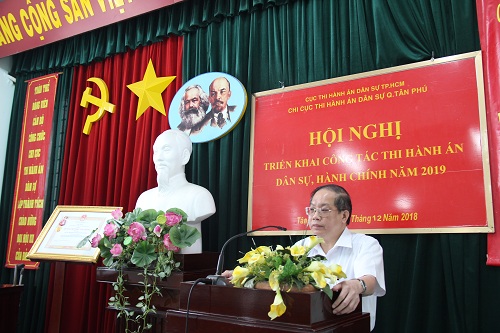 Vừa qua, Chi cục Thi hành án dân sự (THADS) quận Tân Phú tổ chức Hội nghị triển khai công tác THADS năm 2019. Ông Vũ Quốc Doanh, Cục trưởng Cục THADS thành phố dự và chỉ đạo Hội nghị.