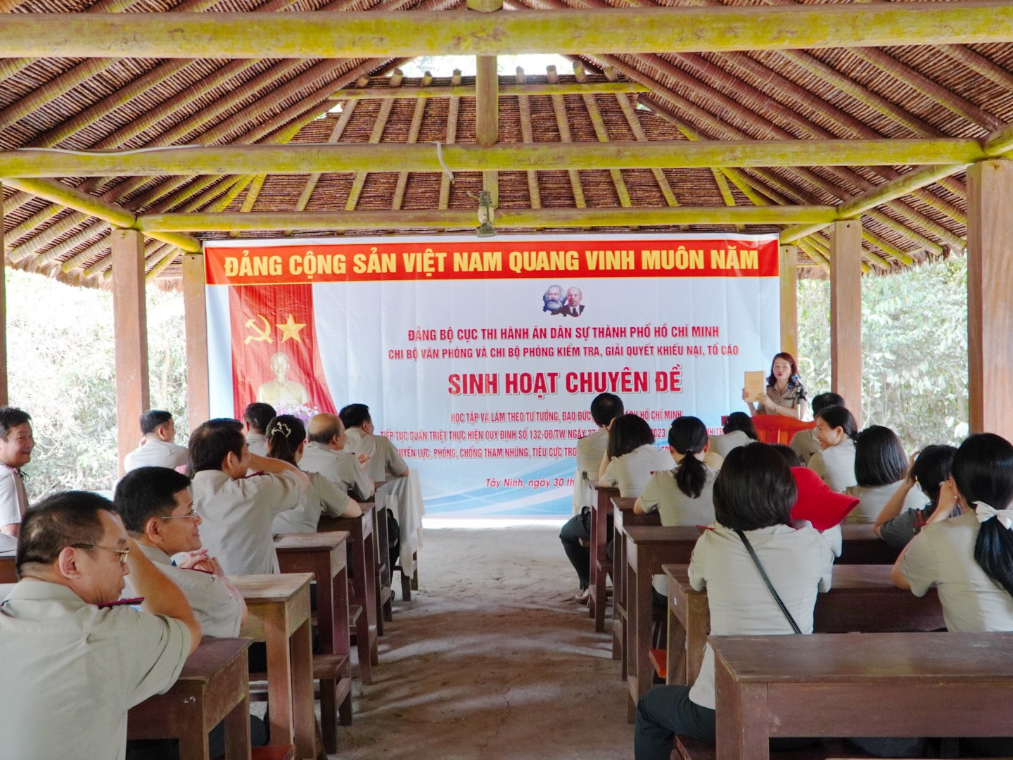 Ngày 30.3, Chi bộ Văn phòng, Chi bộ Phòng Kiểm tra, giải quyết khiếu nại, tố cáo thuộc Đảng bộ Cục THADS TP.HCM đã tổ chức "về nguồn" sinh hoạt hoạt chuyên đề ngoại khoá tại Khu di tích căn cứ Trung ương Cục miền Nam (xã Tân Lập, huyện Tân Biên, tỉnh Tây Ninh),