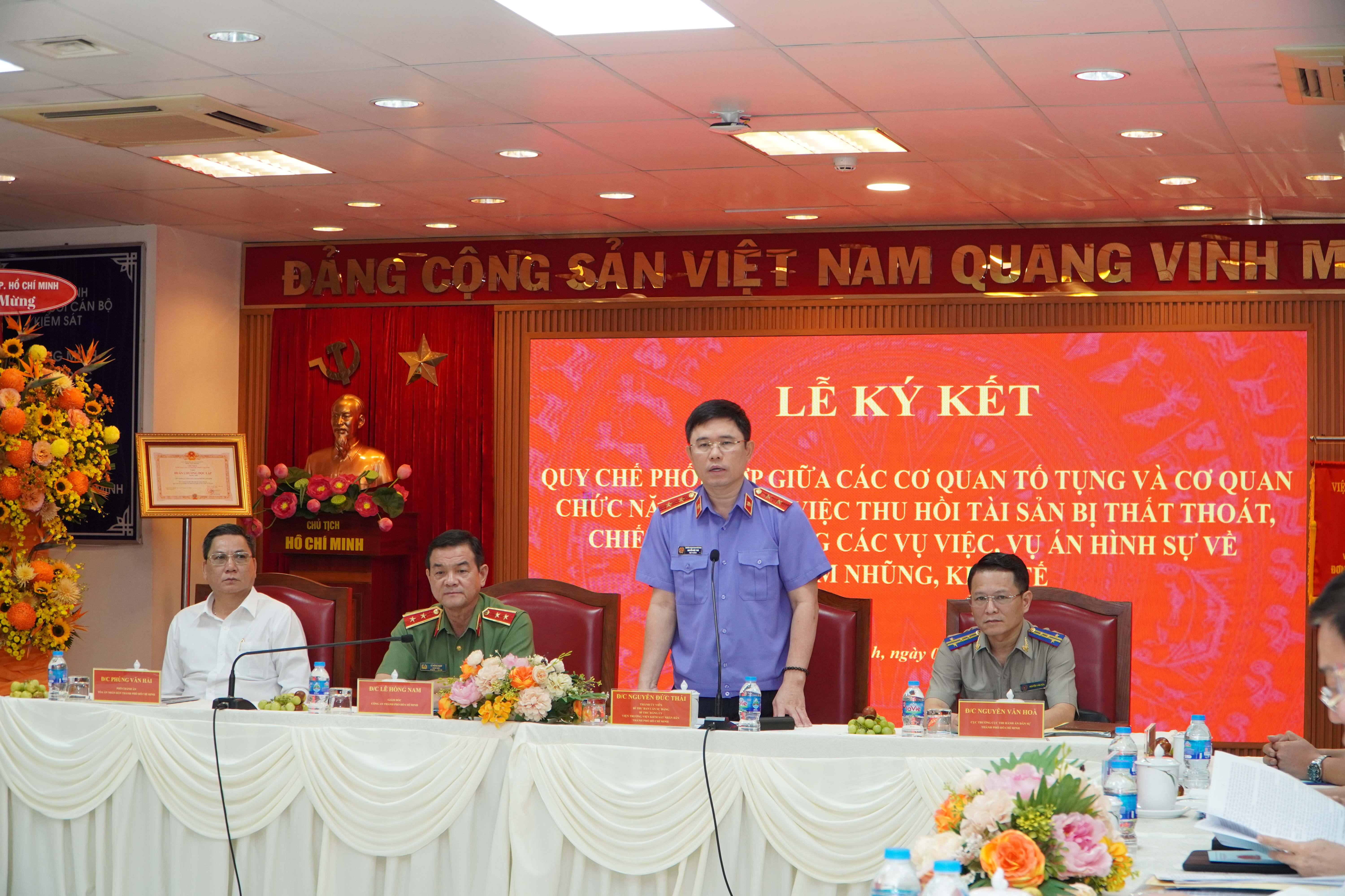 Tham dự Lễ ký kết có đồng chí Lê Hồng Nam, UVBTV Thành ủy, Bí thư Đảng ủy, Giám đốc Công an TP; đồng chí Nguyễn Đức Thái – Bí Thư ban cán sự, Viện trưởng VKSND TP; đồng chí Phùng Văn Hải, Phó Chánh án TAND TP; đồng chí Nguyễn Văn Hòa, Cục Trưởng Cục THADS TP; Các đồng chí là lãnh đạo các cơ quan chức năng cùng tham gia ký kết Quy chế gồm các đơn vị: Bộ đội Biên phòng, Thanh tra, Cục Thuế, Cục Hải quan, Cục Quản lý thị trường, Sở NN-PTNT, Sở Tài chính, Sở KH-ĐT, Sở TN-MT, Sở Tư pháp, Ngân hàng Nhà nước - Chi nhánh TPHCM.