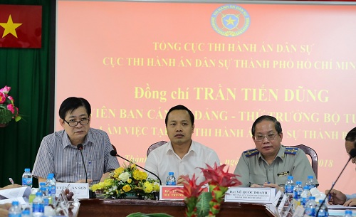 Sáng 20.7, Thứ trưởng Bộ Tư pháp Trần Tiến Dũng cùng đoàn công tác đến đã có buổi làm việc với Cục THADS TP.HCM, về kết quả công tác thi hành án dân sự 09 tháng năm 2018.