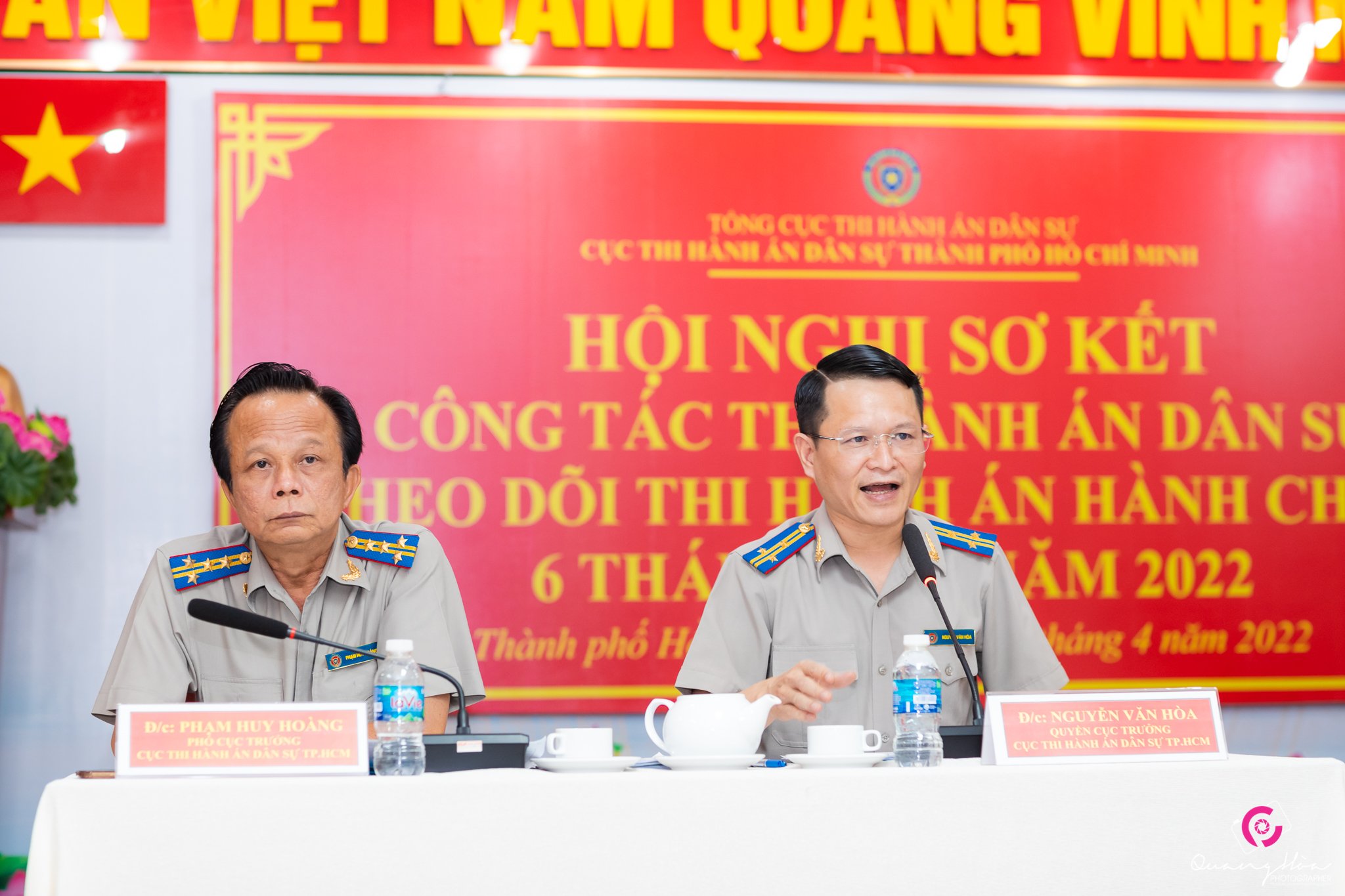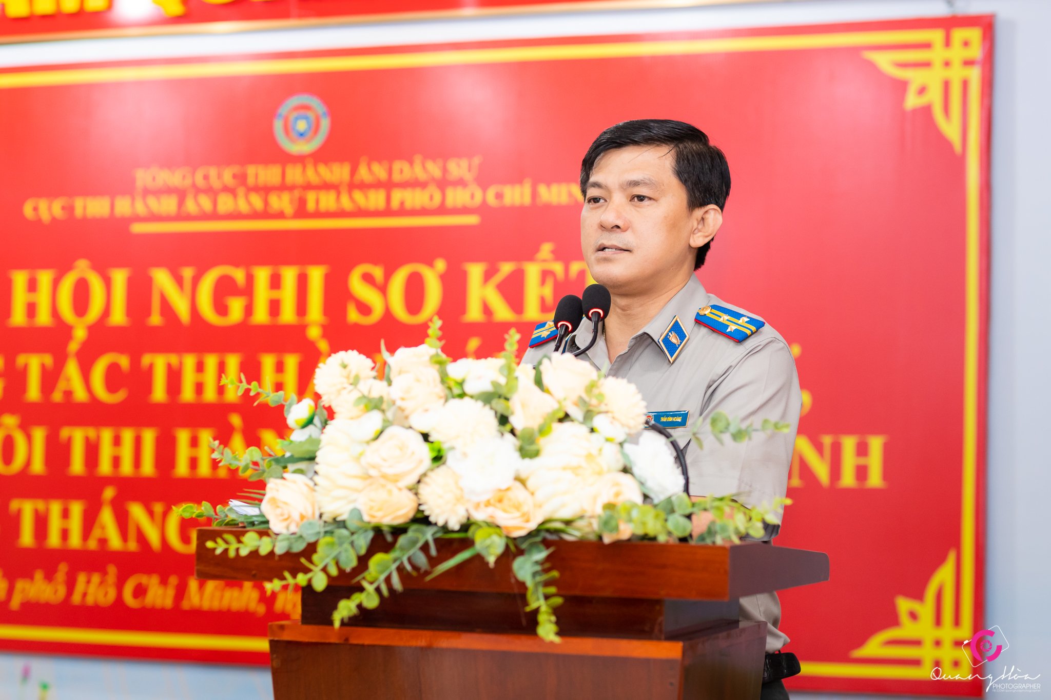 hay mặt Cục THADS TP.HCM Quyền Cục trưởng Nguyễn Văn Hoà hứa sẽ tiếp thu đầy đủ và quán triệt sâu sắc các ý kiến chỉ đạo của Phó Tổng cục trưởng. Cục sẽ tiếp tục nỗ lực, phấn đấu, quyết tâm thực hiện hiệu quả công tác THADS, thiết lập lại kỷ cương hành chính của toàn hệ thống THADS thành phố… Đồng chí cũng bày tỏ hy vọng sẽ tiếp tục nhận được sự quan tâm, lãnh đạo, chỉ đạo sát sao của Ban Cán sự Đảng, Lãnh đạo Bộ Tư pháp, Tổng cục THADS để đưa công tác thi hành án dân sự TP.HCM phát triển, đóng góp nhiều hơn nữa cho công tác chung của Bộ, ngành Tư pháp và sự phát triển của TP.HCM.