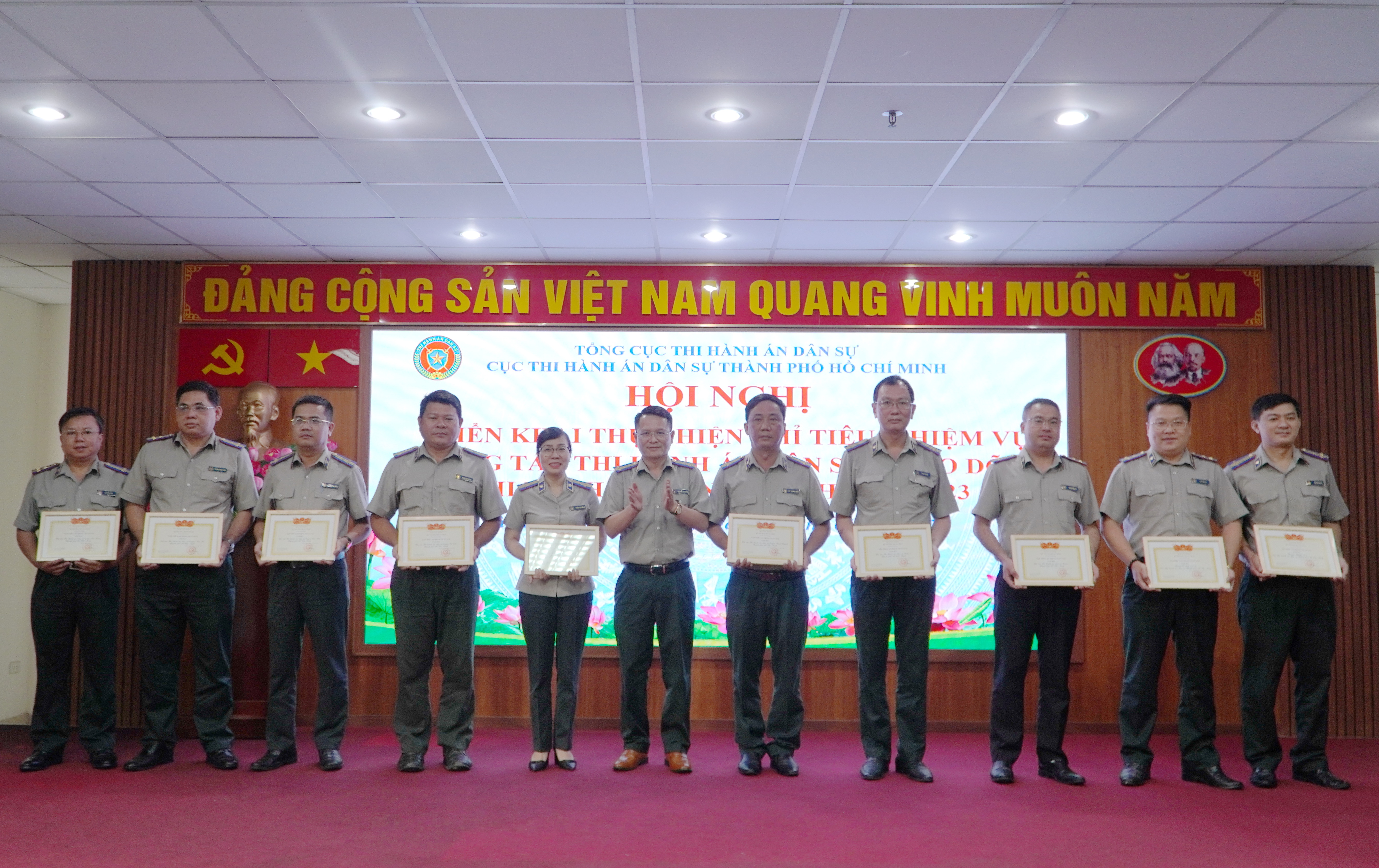 02 tập thể (Cục THADS Thành phố Hồ Chí Minh, Phòng Nghiệp vụ 2) và 11 cá nhân nhận Bằng khen của Bộ trưởng Bộ Tư pháp vì thành tích xuất sắc trong công tác thu hồi tài sản trong các vụ án tham nhũng, kinh tế.