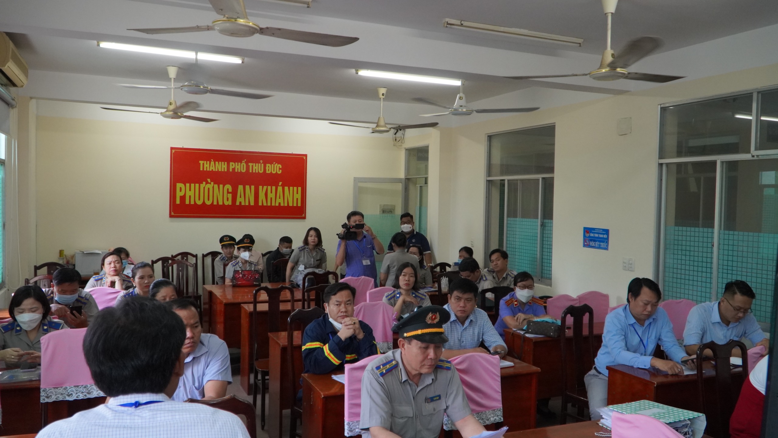 Đúng 08h00 ngày 31/5, tại Ủy ban nhân dân (UBND) phường An Khánh, Hội đồng cưỡng chế đã tổ chức họp để rà soát, nắm bắt toàn bộ nội dung về thủ tục, quy trình, về tình hình an ninh trật tự nơi diễn ra cưỡng chế. Công an khu vực đã báo cáo tình hình hiện tại qua nắm bắt tại địa bàn, khu vực chuẩn bị cưỡng chế là quán cà phê vẫn hoạt động bình thường, số lượng người tập trung tại quán khoảng 40-50 người, Lãnh đạo UBND phường cũng cho biết sẽ phối hợp với các ban, ngành thực hiện hỗ trợ theo kế hoạch để buổi cưỡng chế được diễn ra đúng thời gian. Tiếp đến, Chủ tịch hội đồng cưỡng chế là ông Tạ Đức Ngăn thông tin sơ bộ nội dung liên quan đến việc tổ chức cưỡng chế cho Hội đồng và các thành phần tham gia cưỡng chế biết, thủ tục, quy trình đều tuân thủ pháp luật, mọi tình huống dự liệu sẽ thực hiện theo kế hoạch đề ra.