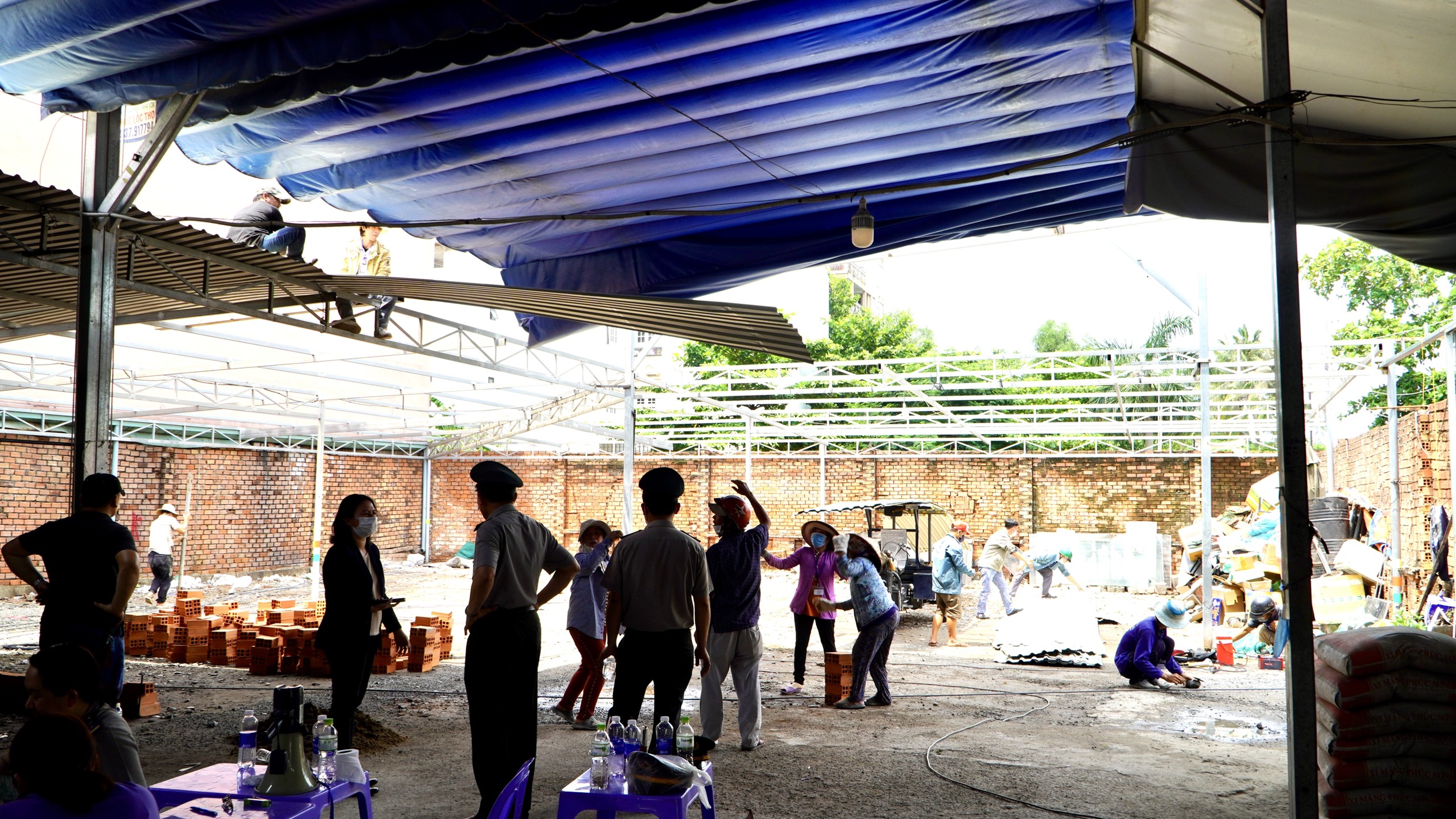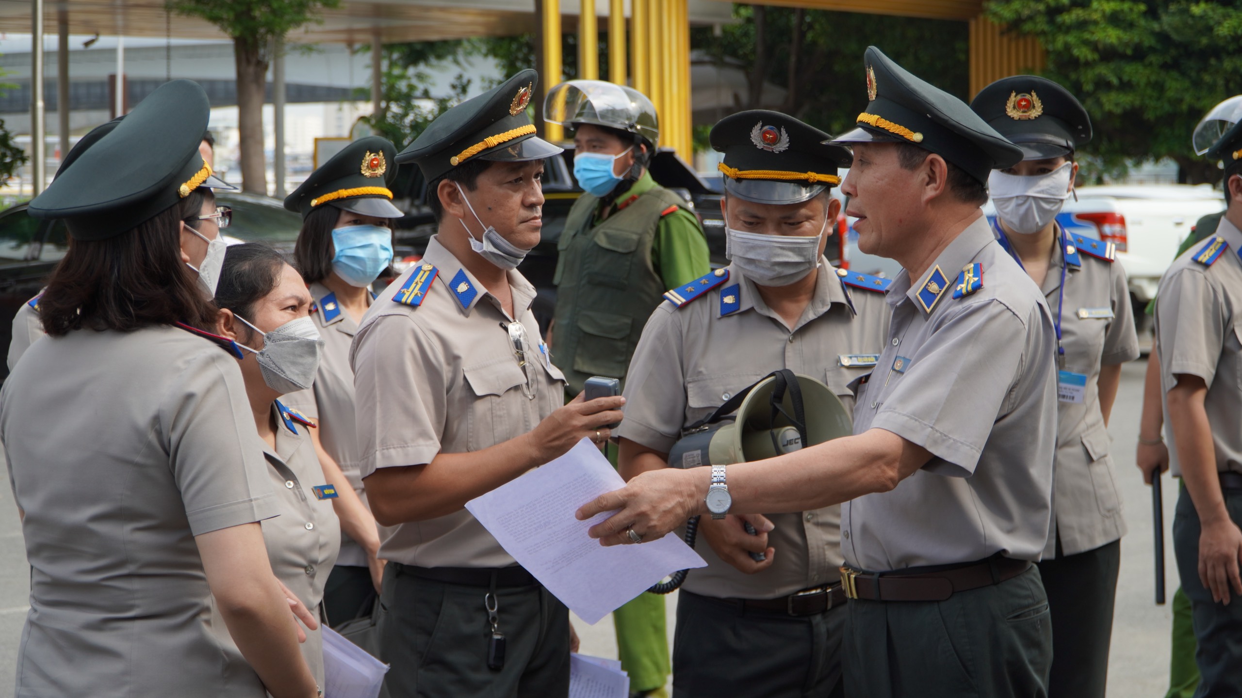 Do đó, để đảm bảo quyền lợi của người được thi hành án, Chấp hành viên lập Kế hoạch cưỡng chế để tháo dỡ, di dời toàn bộ tài sản trên đất, giao lại đất cho người được thi hành án theo nội dung Bản án và Quyết định thi hành án để đảm bảo tính nghiêm minh của pháp luật. Đúng 08h30 phút, Đoàn cưỡng chế đã có mặt và thông báo trên loa để bên thuê mặt bằng trên đất thể hiện ý chí tự nguyện di dời trong vòng 15 phút, nếu không tự nguyện di dời, đoàn cưỡng chế sẽ tiến hành làm việc.