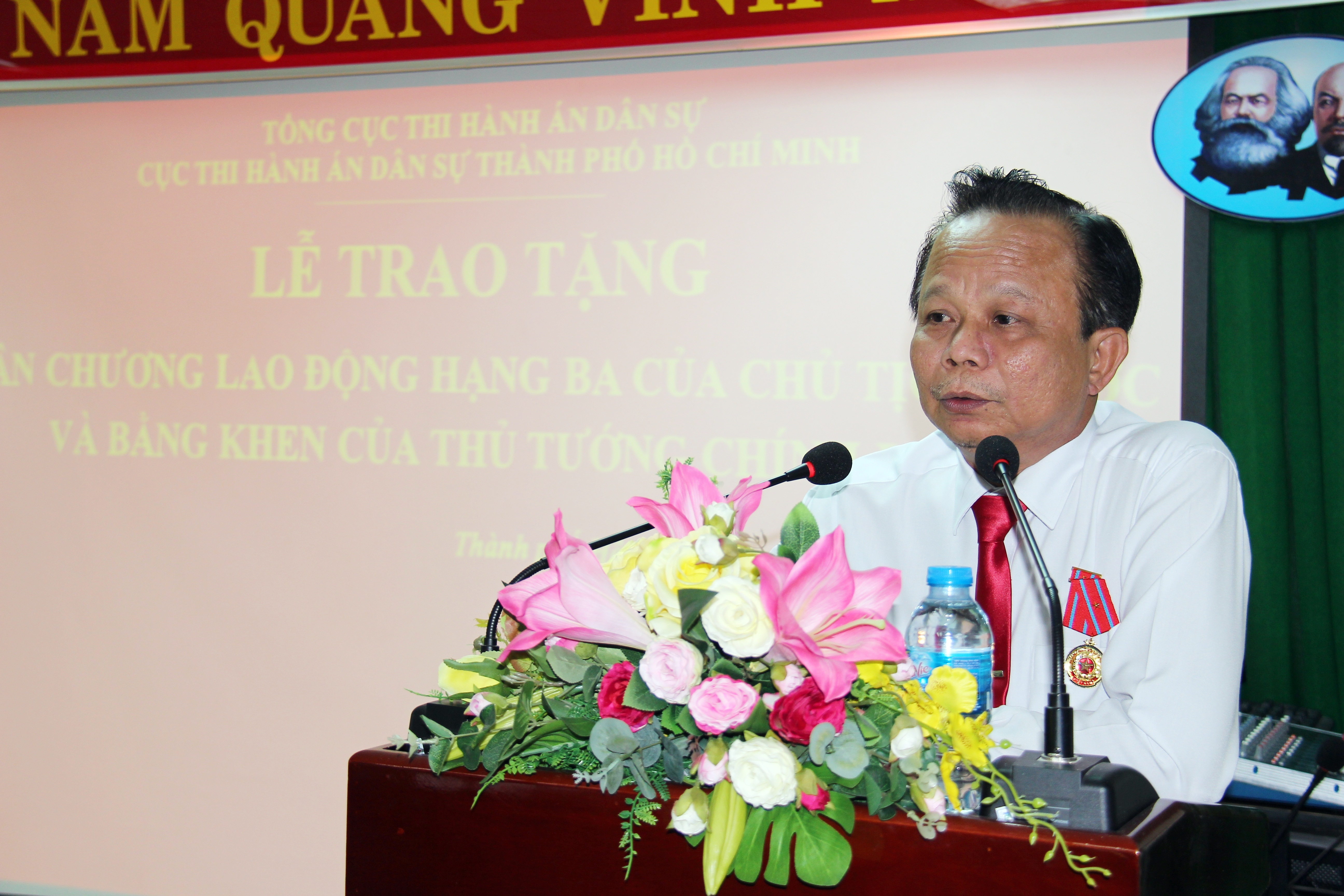 Phát biểu tại buổi lễ, Cục trưởng Vũ Quốc Doanh nhiệt liệt chúc mừng các cá nhân được trao tặng Huân Chương, bằng khen của Đảng, Nhà nước. Các thành tích mà các đồng chí đạt được là cả một quá trình cố gắng phấn đấu không ngừng nghỉ. Cục trưởng mong rằng các đồng chí tiếp tục có những thành công mới trên cương vị công tác của mình, góp phần vào sự nghiệp phát triển bền vững của hệ thống Thi hành án dân sự Thành phố Hồ Chí Minh nói riêng và Hệ thống Thi hành án dân sự nói chung.