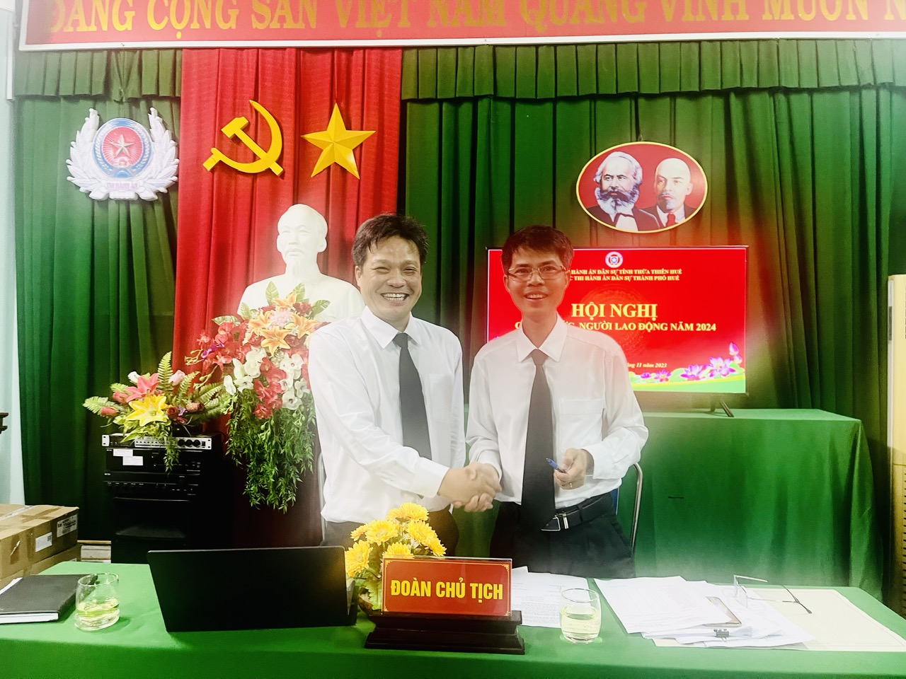 Thực hiện Quy chế dân chủ cơ sở, được sự nhất trí của Chi bộ chiều ngày 30/11/2023 cơ quan phối hợp với Công đoàn Chi cục thi hành án dân sự thành phố Huế tổ chức Hội nghị Công chức người lao động năm 2024.