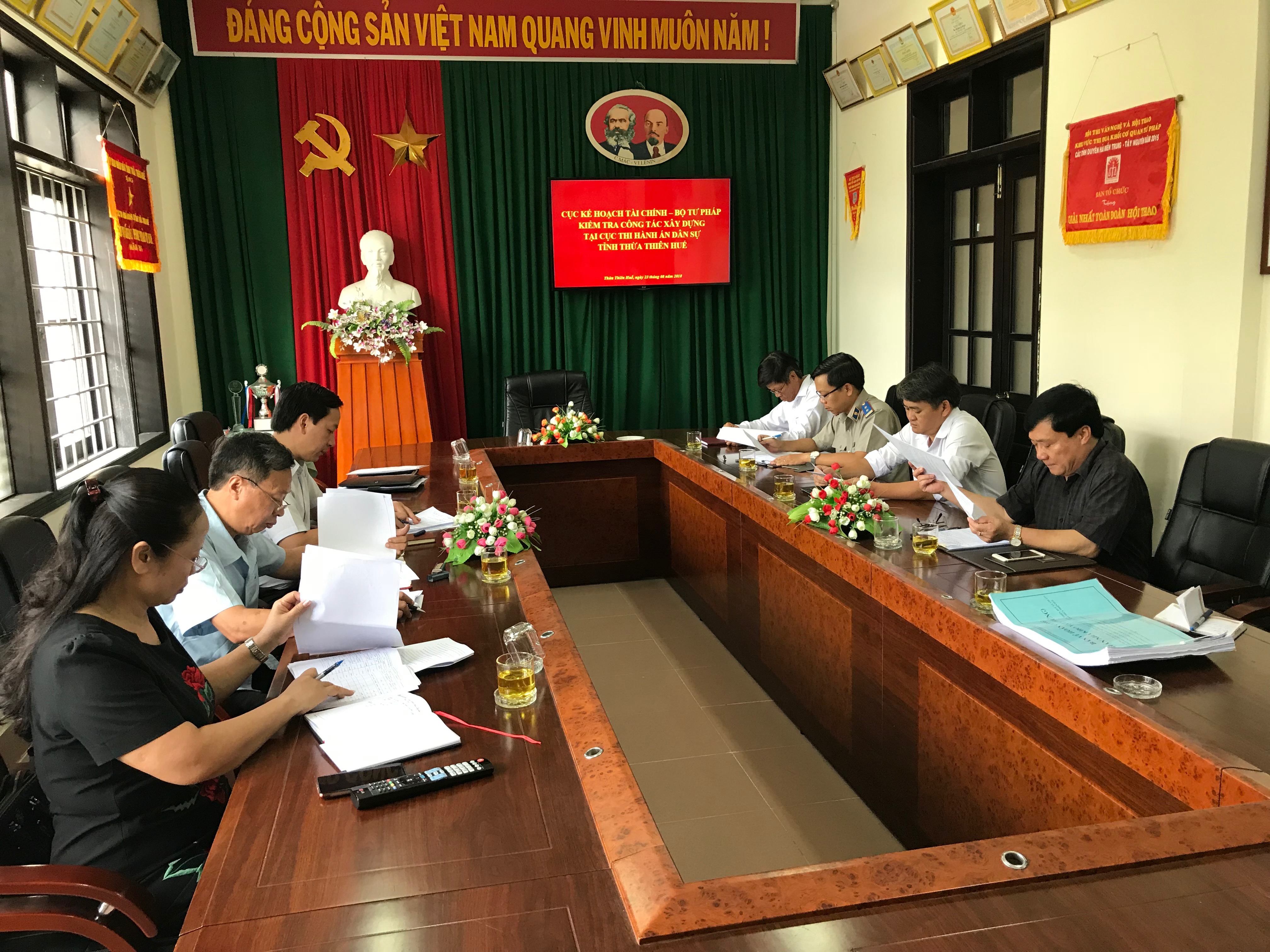 Sáng ngày 23/8/2018, đồng chí Phan Anh Tuấn – Quyền Cục trưởng Cục Kế hoạch tài chính - Bộ Tư pháp dẫn đầu đoàn công tác tiến hành kiểm tra tình hình chất lượng và công tác quản lý chất lượng công trình “Cụm kho vật chứng, kết hợp cải tạo mở rộng trụ sở Cục Thi hành án dân sự tỉnh Thừa Thiên Huế”.