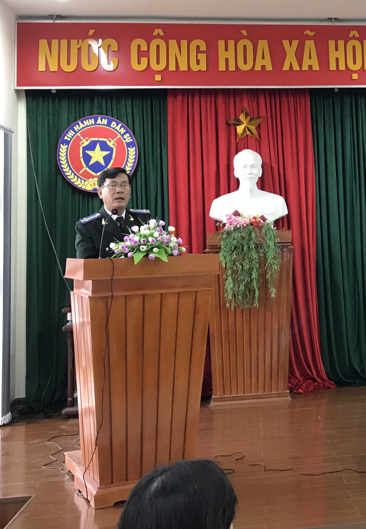 Ngày 12/12/2018, Đồng chí Lê Kính - Phó Cục trưởng, chủ trì Hội nghị tập huấn nghiệp vụ thi hành án dân sự và bồi thường Nhà nước trong hoạt động thi hành án dân sự cho toàn bộ Chấp hành viên, Thẩm tra viên, Thư ký, Chuyên viên.