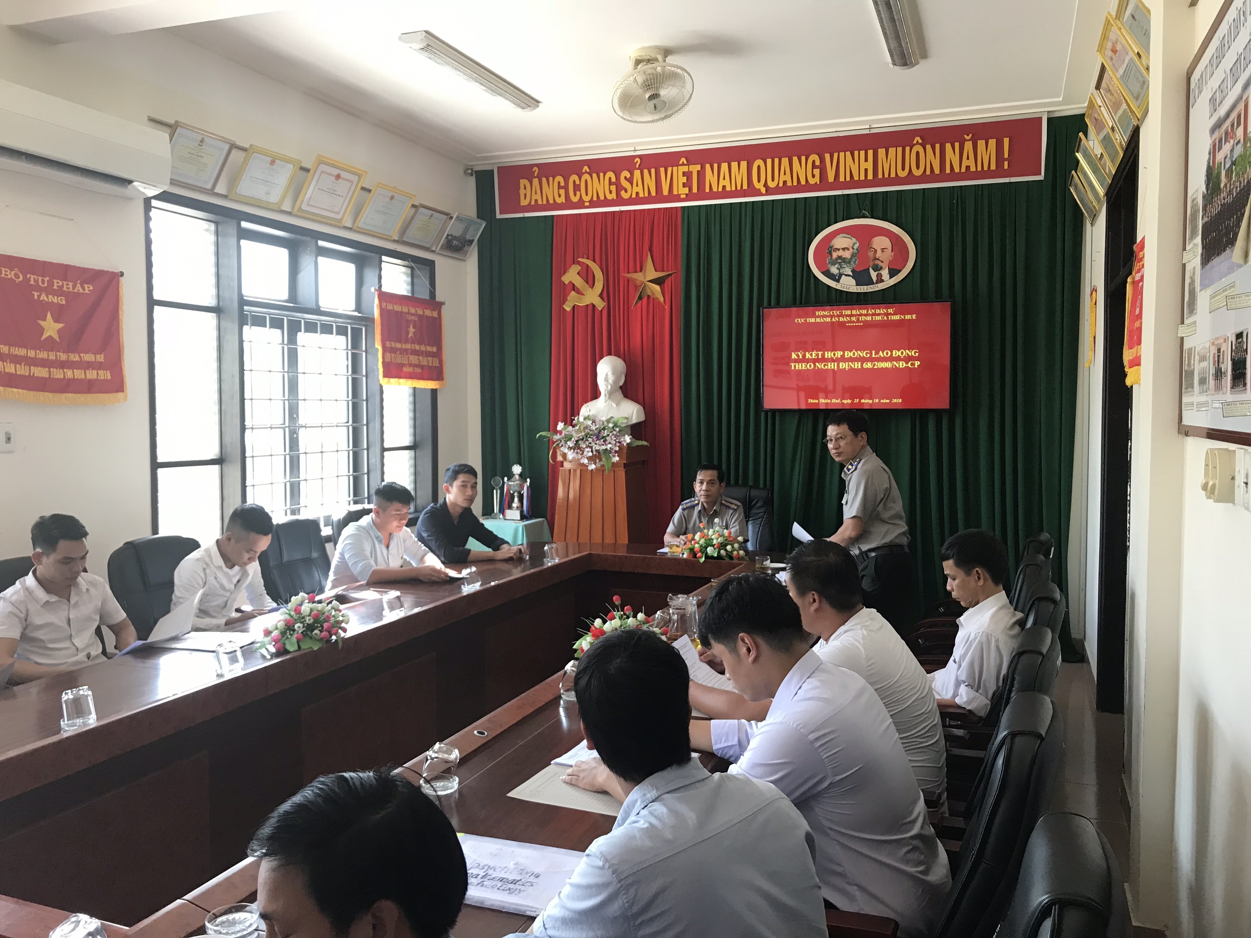 Chiều ngày 25 tháng 10 năm 2018 Cục Thi hành án dân sự tỉnh Thừa Thiên Huế tổ chức ký kết hợp đồng lao động theo nghị định 68/2000/NĐ-CP.