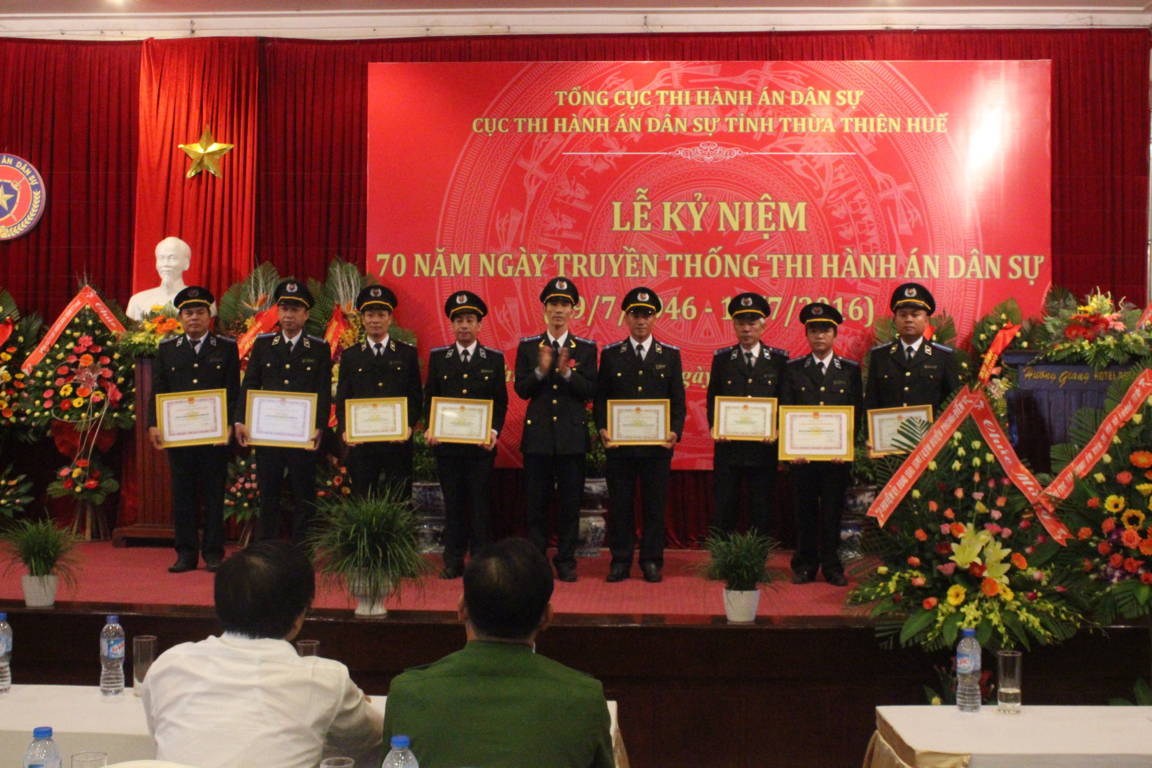 Tại lễ kỷ niệm, đồng chí Lê Đông Hải - Cục trưởng Cục Thi hành án dân sự tỉnh thay mặt lãnh đạo Cục Thi hành án dân sự tỉnh ôn lại truyền thống 70 năm( 19/7/1946 - 19/7/2016) của ngành Thi hành án dân sự Việt Nam. Cùng với sự trưởng thành của cơ quan Thi hành án dân sự cả nước, cơ quan Thi hành án dân sự tỉnh Thừa Thiên Huế đã từng bước trưởng thành và đóng góp quan trọng, góp phần giữ vững ổn định chính trị, trật tự, an toàn xã hội trên địa bàn tỉnh. Tách ra khỏi hệ thống Tòa án nhân dân từ tháng 6/1993, ban đầu cơ quan Thi hành án dân sự tỉnh Thừa Thiên Huế là Phòng Thi hành án dân sự thuộc Sở Tư pháp và 9 Đội Thi hành án dân sự cấp Huyện thuộc các Phòng Tư pháp với tổng số cán bộ 11 người. Qua 23 năm xây dựng và phát triến, hệ thống bộ máy tổ chức của cơ quan Thi hành án dân sự toàn tỉnh đã được củng cố, kiện toàn, đến nay tại Cục Thi hành án dân sự tỉnh Lãnh đạo Cục, gồm có Cục trưởng và 02 Phó Cục trưởng; 04 Phòng chuyên môn. Các Chi cục cấp huyện (09/09 Chi cục) đều đã được kiện toàn đội ngũ CBQL. Toàn tỉnh hiện có 111 biên chế, trong đó có 49 Chấp hành viên (01 CHV Cao cấp, 13 CHV Trung cấp, 35 CHV Sơ cấp), 12 Thẩm tra viên, 18 Thư ký thi hành án, 12 Kế toán trưởng và 20 cán bộ, chuyên viên còn lại (không kể một số Hợp đồng khác như tạp vụ, lái xe, bảo vệ…). Trình độ chuyên môn của cán bộ công chức đã được chuẩn hóa so với giai đoạn trước đây, gồm 02 Thạc sỹ, Đại học có 100 người, Cao đẳng 03 có người, Trung cấp có 06 người. Trình độ chính trị: Cử nhân 02, Cao cấp 13, Trung cấp 75, Sơ cấp 21. Trình độ quản lý nhà nước: chuyên viên cao cấp 02, chuyên viên chính 09, chuyên viên 45. Cơ sở vật chất, trang thiết bị và kinh phí phục vụ công tác chuyên môn được các cấp quan tâm, tạo điều kiện thuận lợi cho việc triển khai nhiệm vụ công tác thi hành án dân sự …Những năm qua, dưới sự quan tâm chỉ đạo của Bộ Tư pháp, Tổng cục Thi hành án dân sự và Tỉnh ủy, Ủy ban nhân dân tỉnh, cùng với sự nỗ lực vượt khó của cán bộ, công chức toàn ngành, công tác thi hành án dân sự trên địa bàn đã đạt được nhiều kết quả tích cực. Chỉ tính riêng từ năm 2009 đến năm 2015, các cơ quan Thi hành án dân sự của tỉnh đã thụ lý 26.231 việc, trong đó có 21.151 việc có điều kiện thi hành, 5.080 việc chưa có điều kiện thi hành, đã giải quyết xong 19.094 việc, đạt tỷ lệ 90%. Tổng số tiền phải thi hành trên 1.700 tỷ đồng, đã giải quyết xong gần 771 tỷ đồng trong 816 tỷ đồng có điều kiện thi hành, đạt tỷ lệ 94%. Với những thành tích, kết quả được ghi nhận cùng với kinh nghiệm trong quá trình thực hiện nhiệm vụ được giao và những cống hiến của toàn ngành cũng như hưởng ứng phong trào thi đua, nhiều tập thể, cá nhân cơ quan THADS tỉnh đã được Thủ tướng Chính phủ, Bộ Tư pháp, Tổng cục THADS và UBND tỉnh tặng nhiều phần thưởng cao quý; đặc biệt, Cục Thi hành án dân sự tỉnh được Thủ tướng Chính phủ tặng bằng khen năm 2013 và Ủy ban nhân dân tỉnh tặng Cờ thi đua năm 2015.