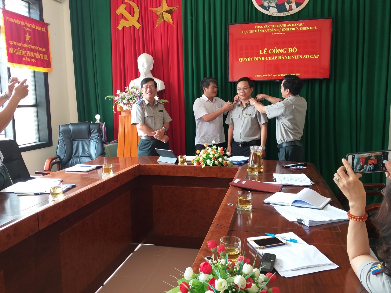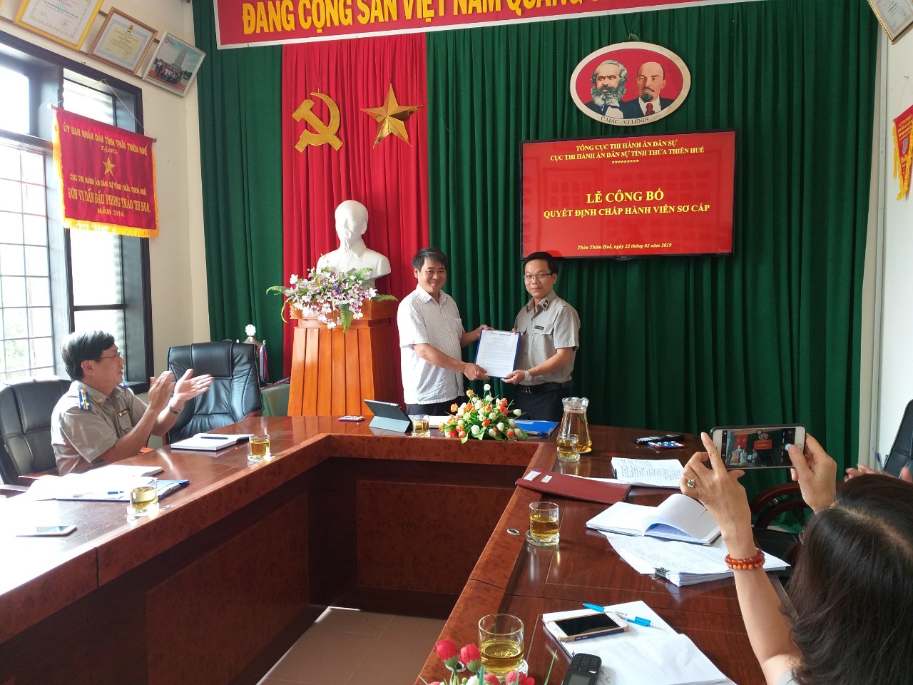 Chiều ngày 22/02/2019,Cục Thi hành án dân sự (THADS) tỉnh Thừa Thiên Huế tổ chức Lễ công bố và trao Quyết định của Bộ trưởng Bộ Tư pháp về việc bổ nhiệm Chấp hành viên sơ cấp đối với ông Lê Ngọc Anh, Chánh Văn phòng Cục Thi hành án dân sự tỉnh Thừa Thiên Huế